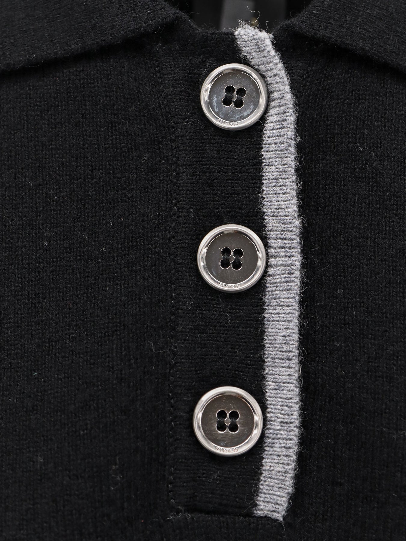 Three-button closure Classic pointed collar Short sleeves and ribbed trim Logo label at the bottom 90% wool, 10% cashmere SKU: 105450A2Q9Z99