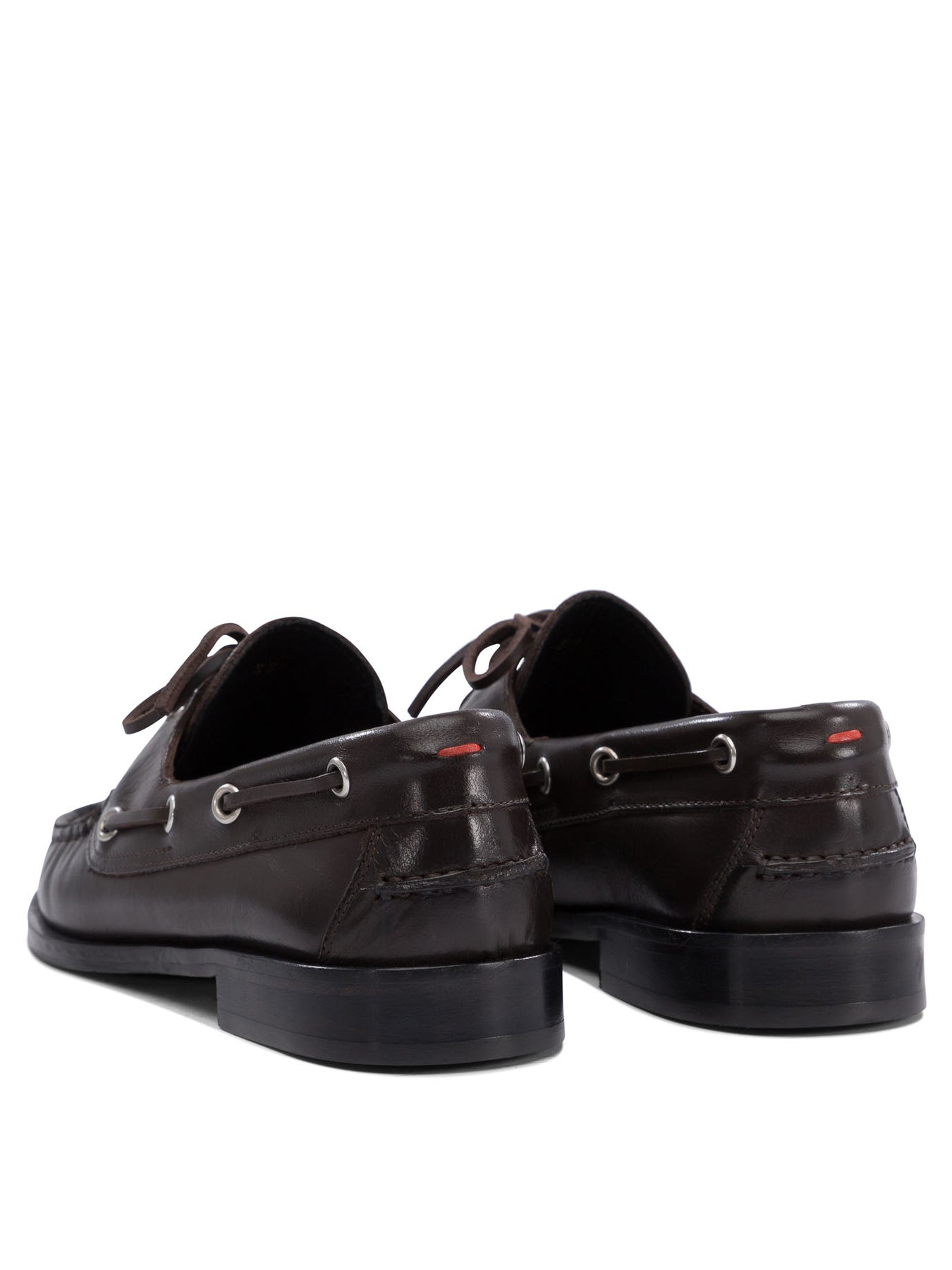 Aeyde "Harris" lace-up loafers, constructed of nappa leather with a smooth surface and slip-on construction. The silhouette features an essential silhouette and a low profile, featuring metal eyelets and lace details arranged along the sides. The model incorporates a low, solid heel designed to provide stability during wear. The workmanship reflects attention to the definition of the seams and the inclusion of functional elements. || - Upper made of nappa leather - Side metal eyelets - Low, sturdy heel - Leather lining and insole - Leather sole