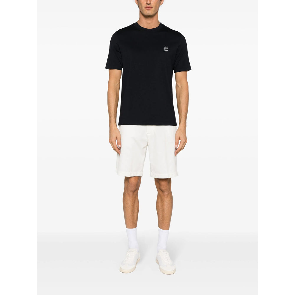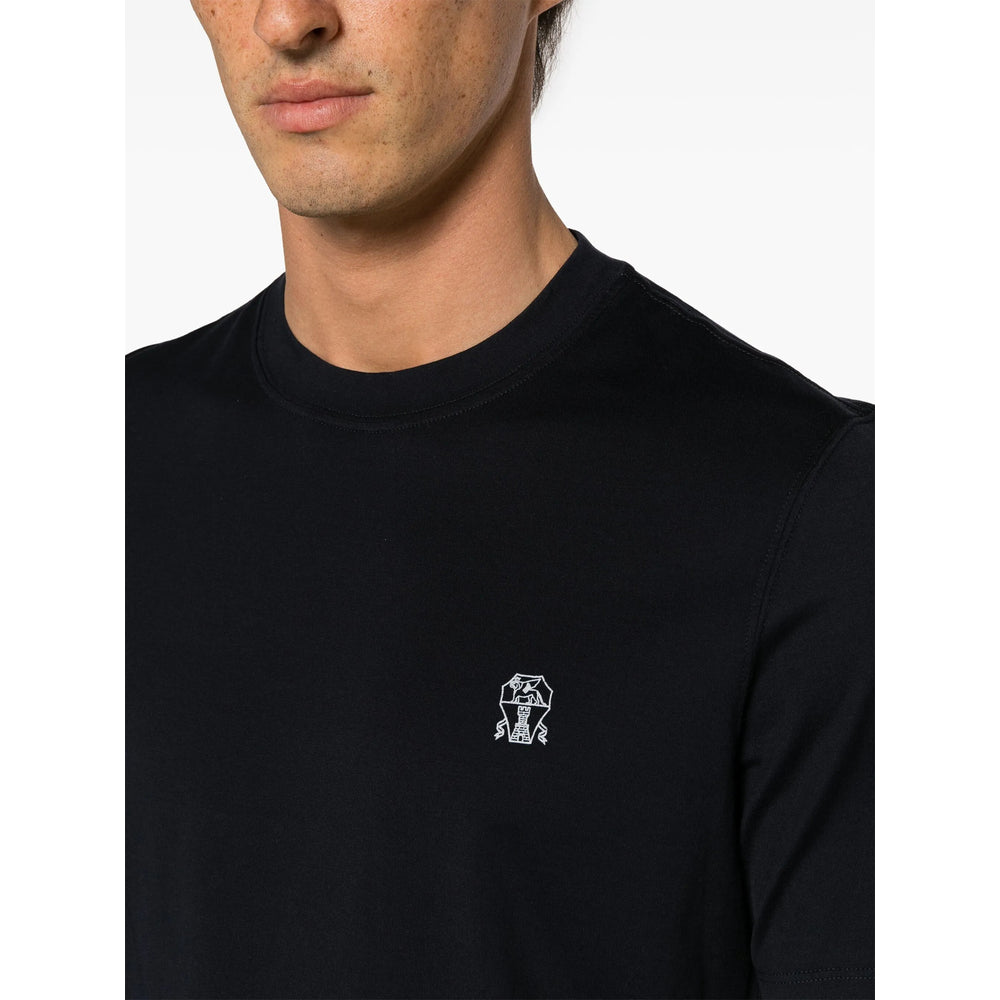 navy blue cotton soft jersey logo print at the chest crew neck short sleeves straight hem