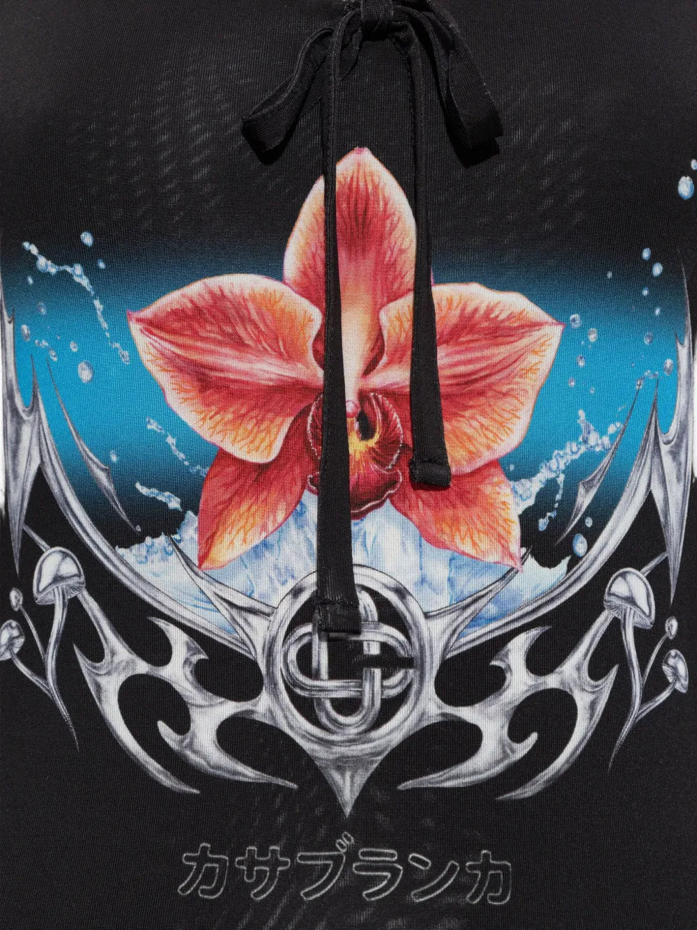 Blades Slinky Midi Dress Features Black Floral print Lavaliere collar Racing neckline Side slit Composition Outer fabric: 95% viscose, 5% elastane Washing Instructions Read the manufacturer`s instructions ID WAW25JDR01501