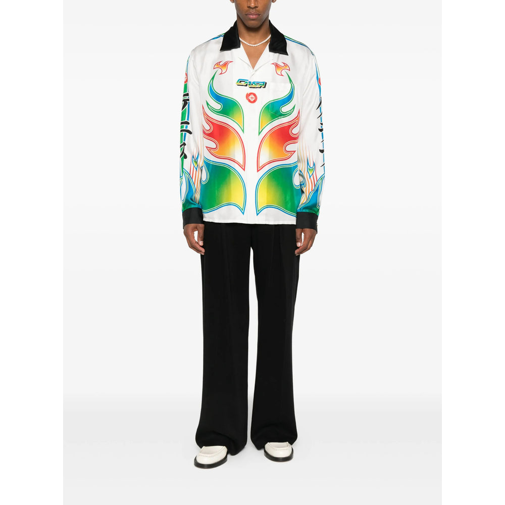 white flame pattern long sleeves revere collar button fastening graphic print