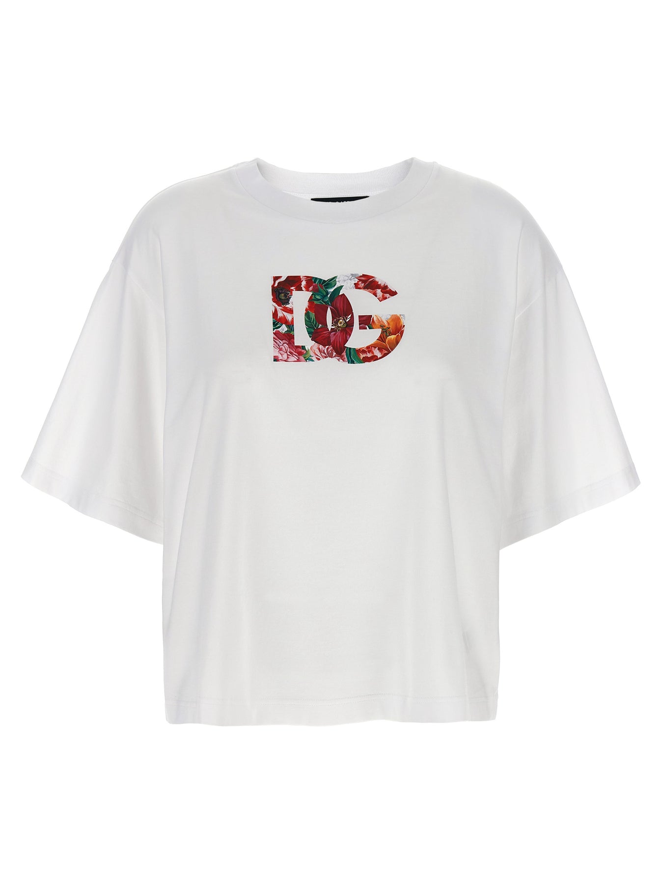 Light cotton jersey T-shirt with front floral logo print, crew neck, short sleeves.