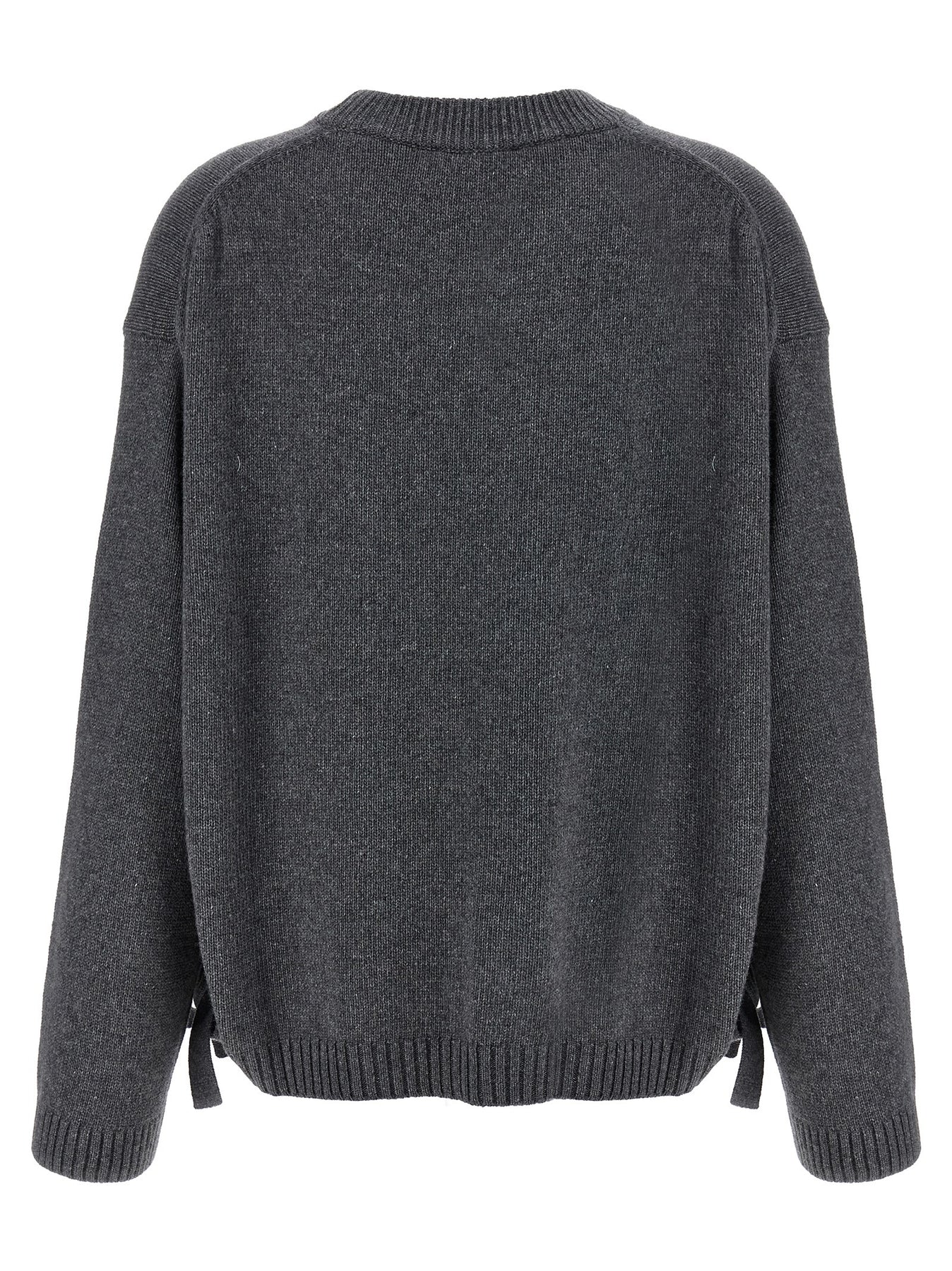 Wool and viscose blend sweater, front logo patch, crew neck, long sleeves with cuffs and dropped shoulder, side laces to modulate the length.