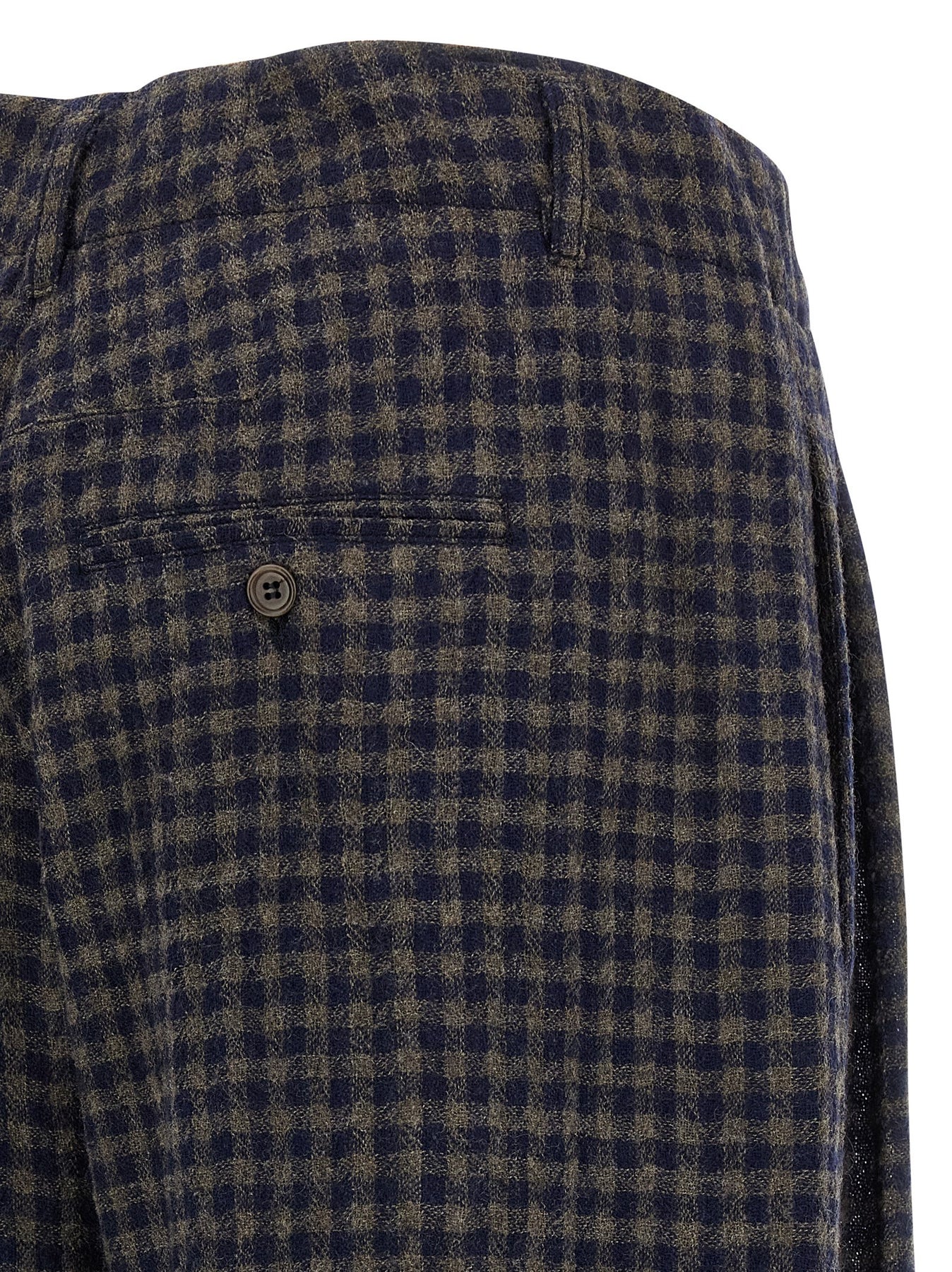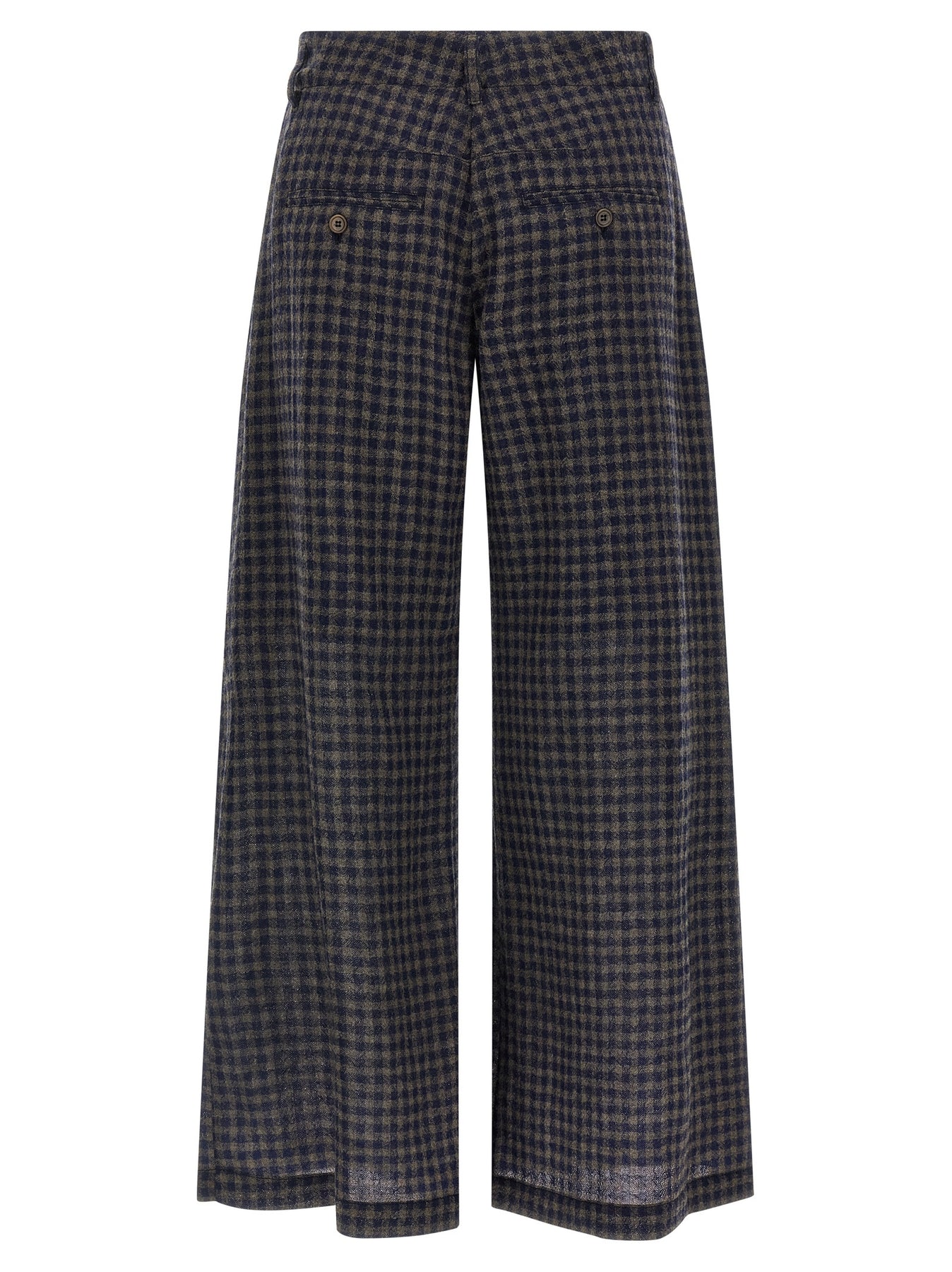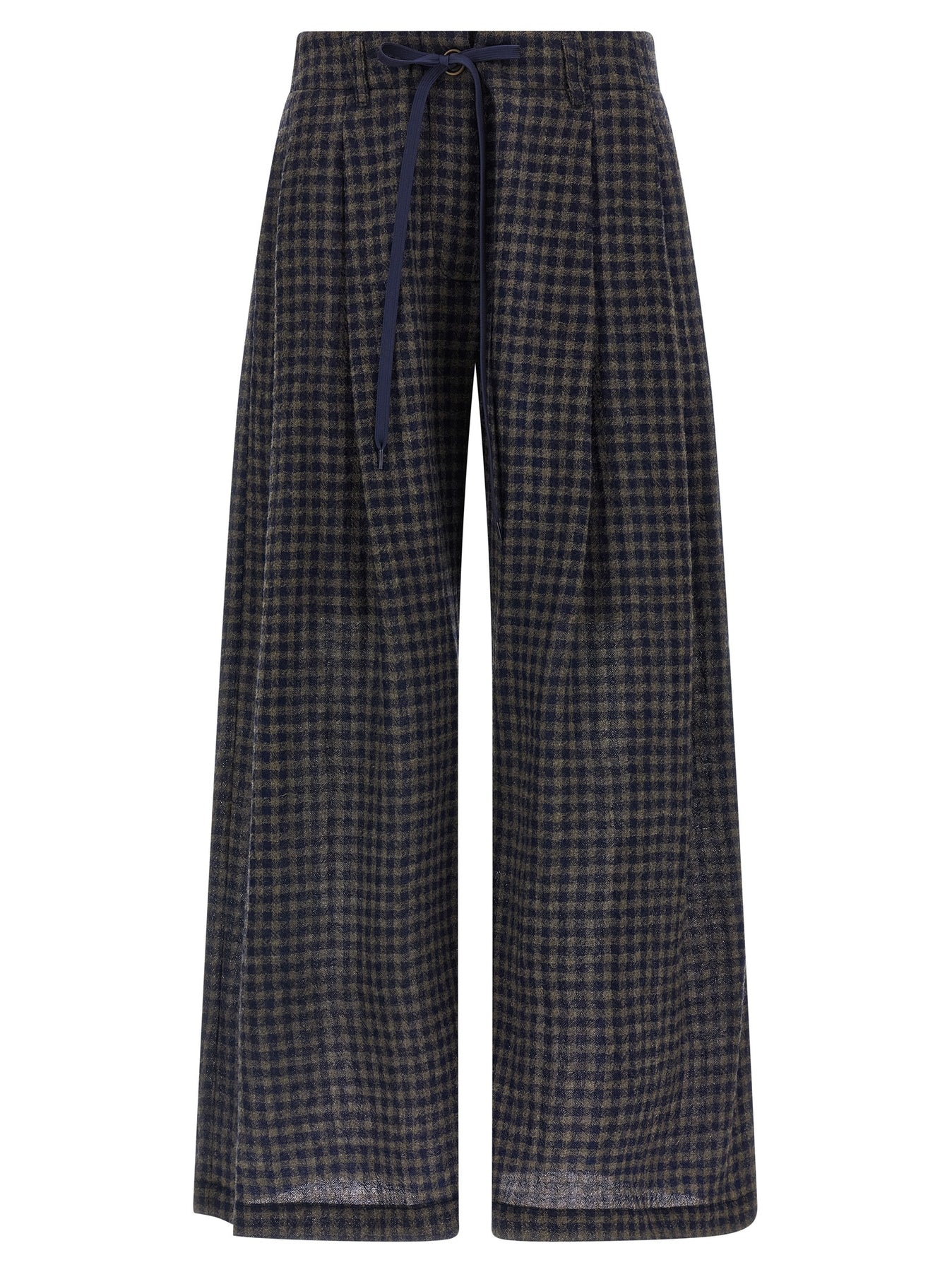 'Antoine' light wool pants featuring a vichy pattern, crop model, drawstring at the waist, front button clamp and closure, wide leg, half lined in striped cotton poplin.