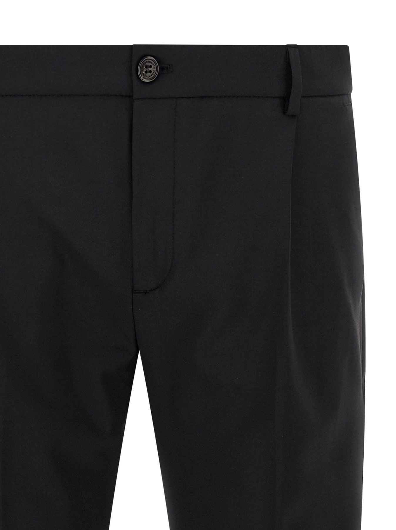 'Prince' wool blend pants, crop model, pins, ironed pleat, front zip and button closure, pockets, back logo patch.