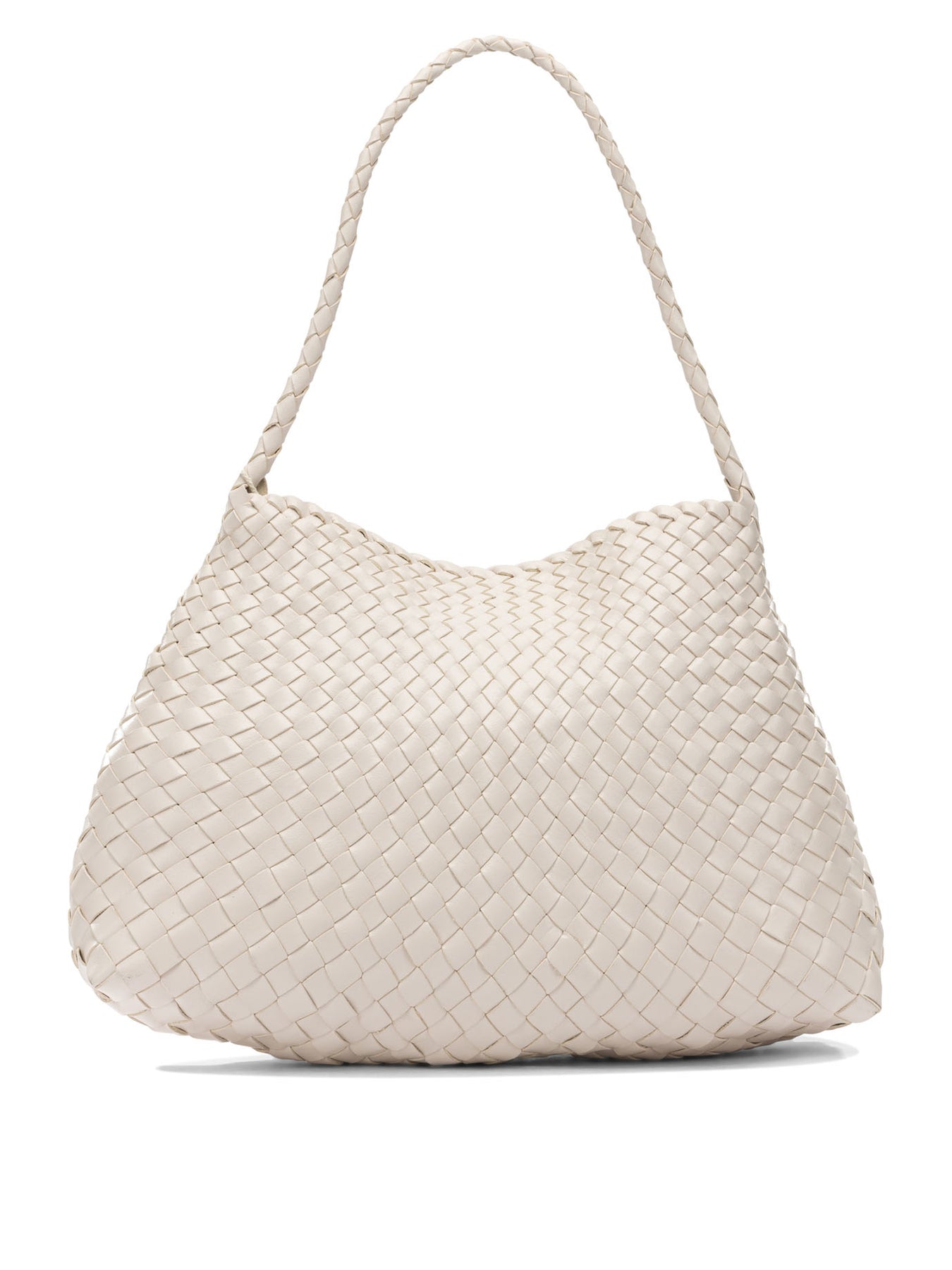 Dragon Diffusion medium "Santa Maria" shoulder bag with compact structure and profile defined by essential lines. Slender, tapered handles, designed for shoulder carry, are integrated directly into the hand-woven basket. The construction employs buffalo calfskin leather, unlined, and echoes a distinctive pattern already found on other models of the brand. Rigid silhouette and capacity designed for everyday use. || - Hand woven basket - Buffalo calfskin leather - Integrated slender handles, shoulder carry - Antiqued medal of St. Christopher sewn inside - Unlined structure - Dragon Diffusion seal of authenticity