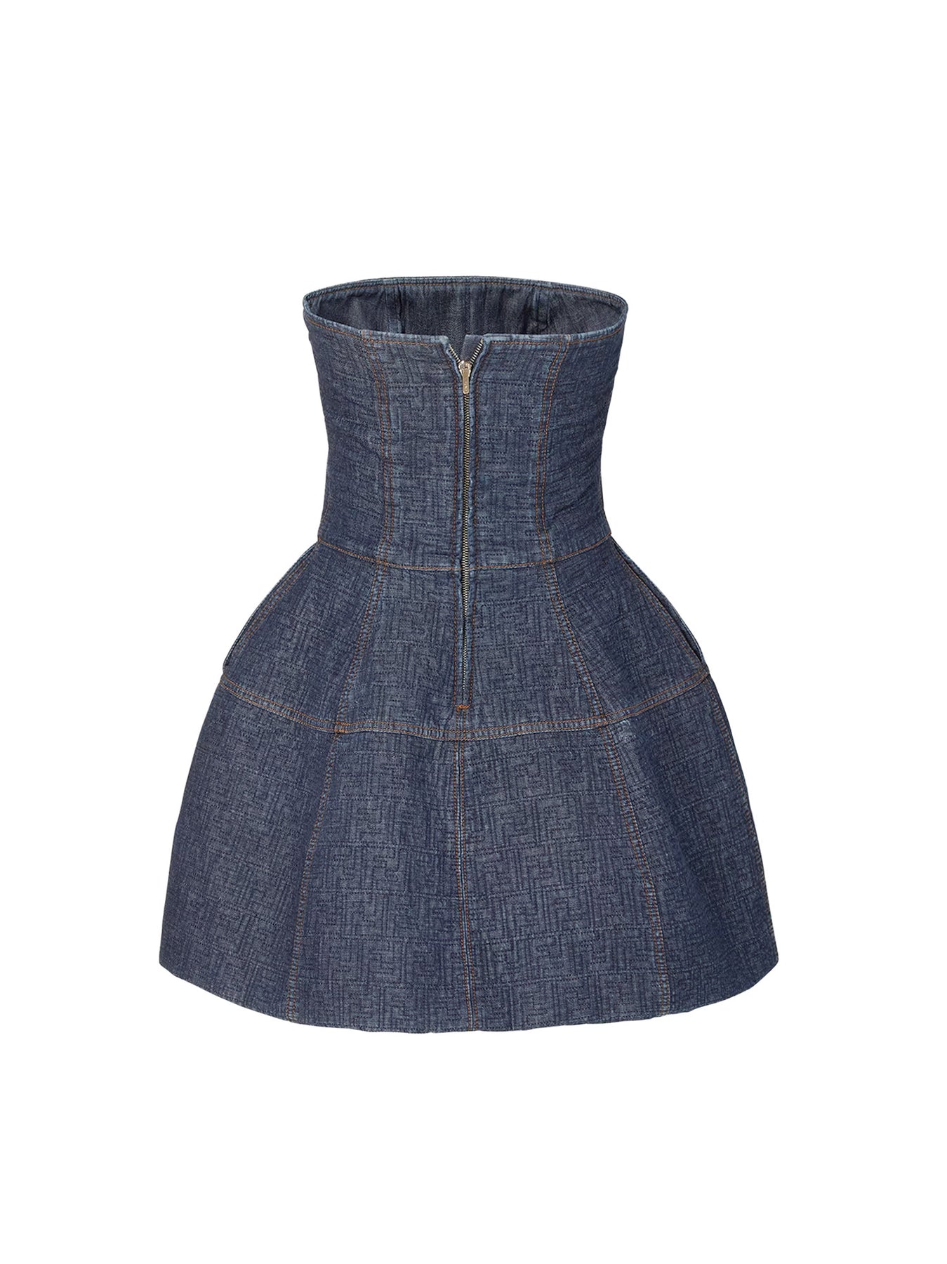 Bustier detail Puff skirt Back zip closure Quilted FF motif Made in Italy 100% cotton Filling: 100% polyester SKU: FLD568AW82F1UKI
