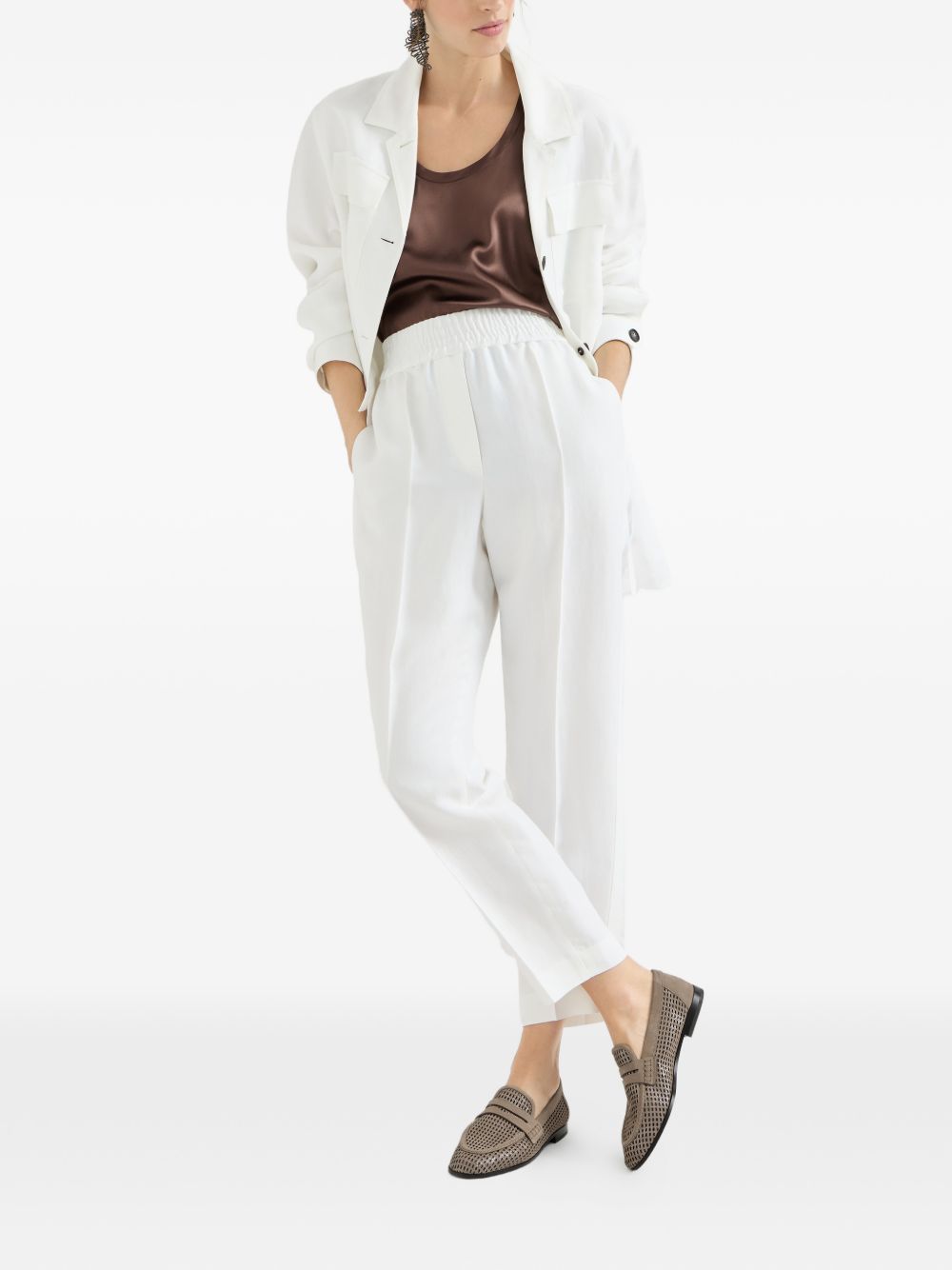 light brown perforated design slip-on style flat sole