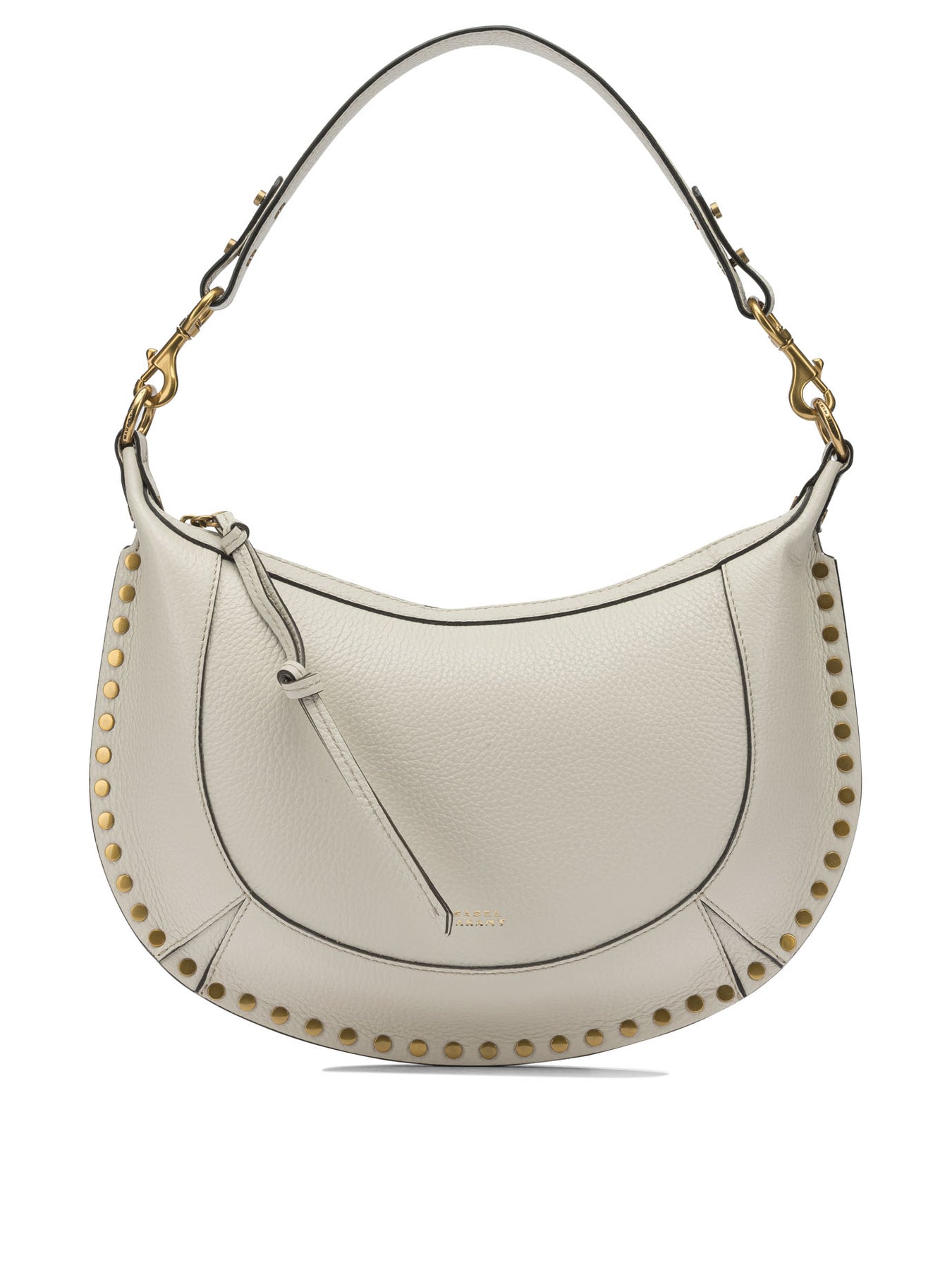 Isabel Marant medium "Naoko" shoulder bag, made of leather, features a structured silhouette with a rigid profile. The design is developed with a double removable shoulder strap, one of which is adjustable, allowing the bag to be carried either by hand or on the shoulder. The top closure features a full-length zipper, while the brand's logo is embossed on the front. The outer edge is finished with gold studs. || - Medium-grain leather - Double removable shoulder strap, one of which is adjustable - Top zipper closure - Interior fully lined with cotton - Interior patch pocket - Embossed Isabel Marant logo on the front - Outer border decorated with gold studs