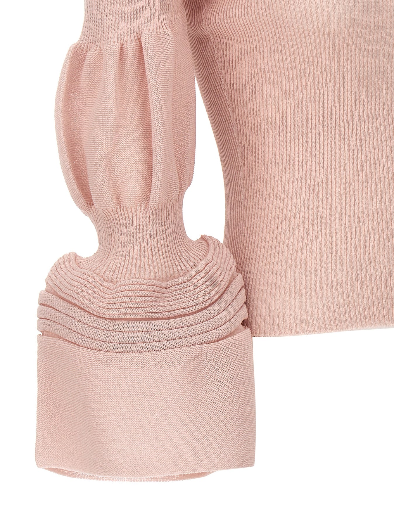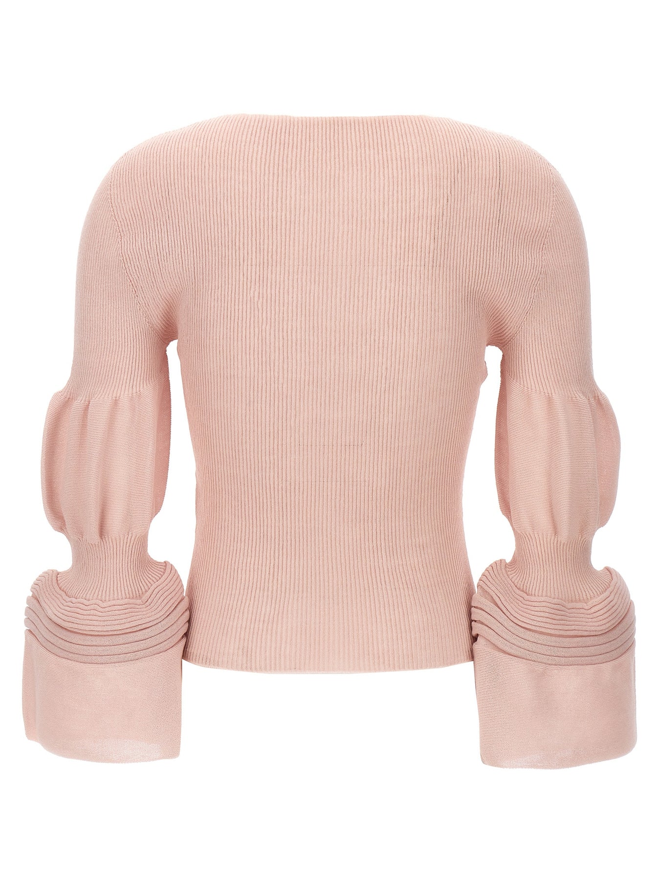 'Assemblage branch' ramie blend knit top with long puff sleeves. Round neck.