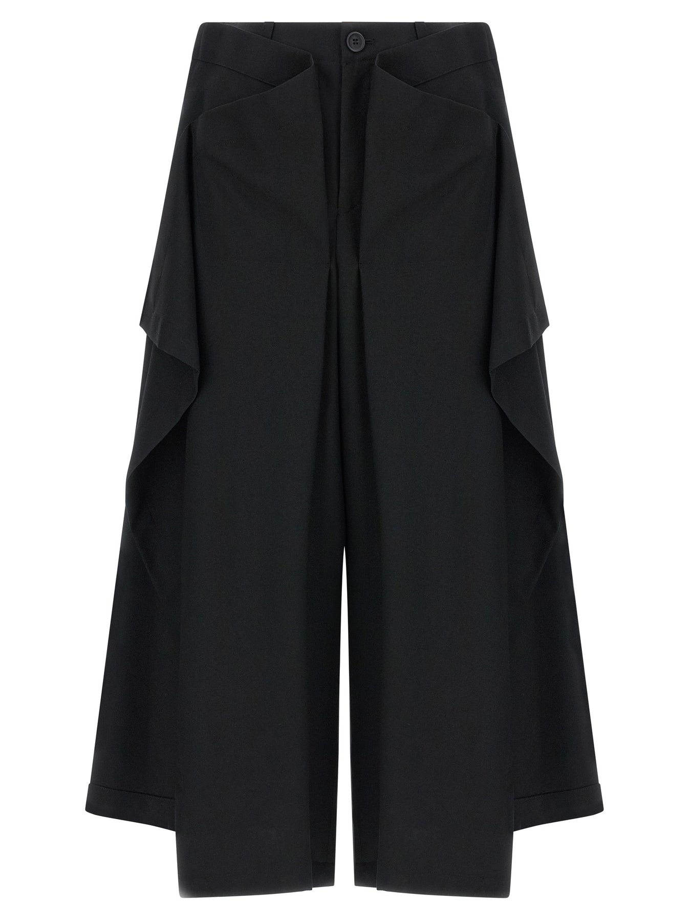 'Uni-Form (Wool)' wool trousers woven with thin fibers finished with Nashiji technique, draped silhouette, wide leg with characteristic side panels, zip and front button closure, pockets, slits on the leg bottom.