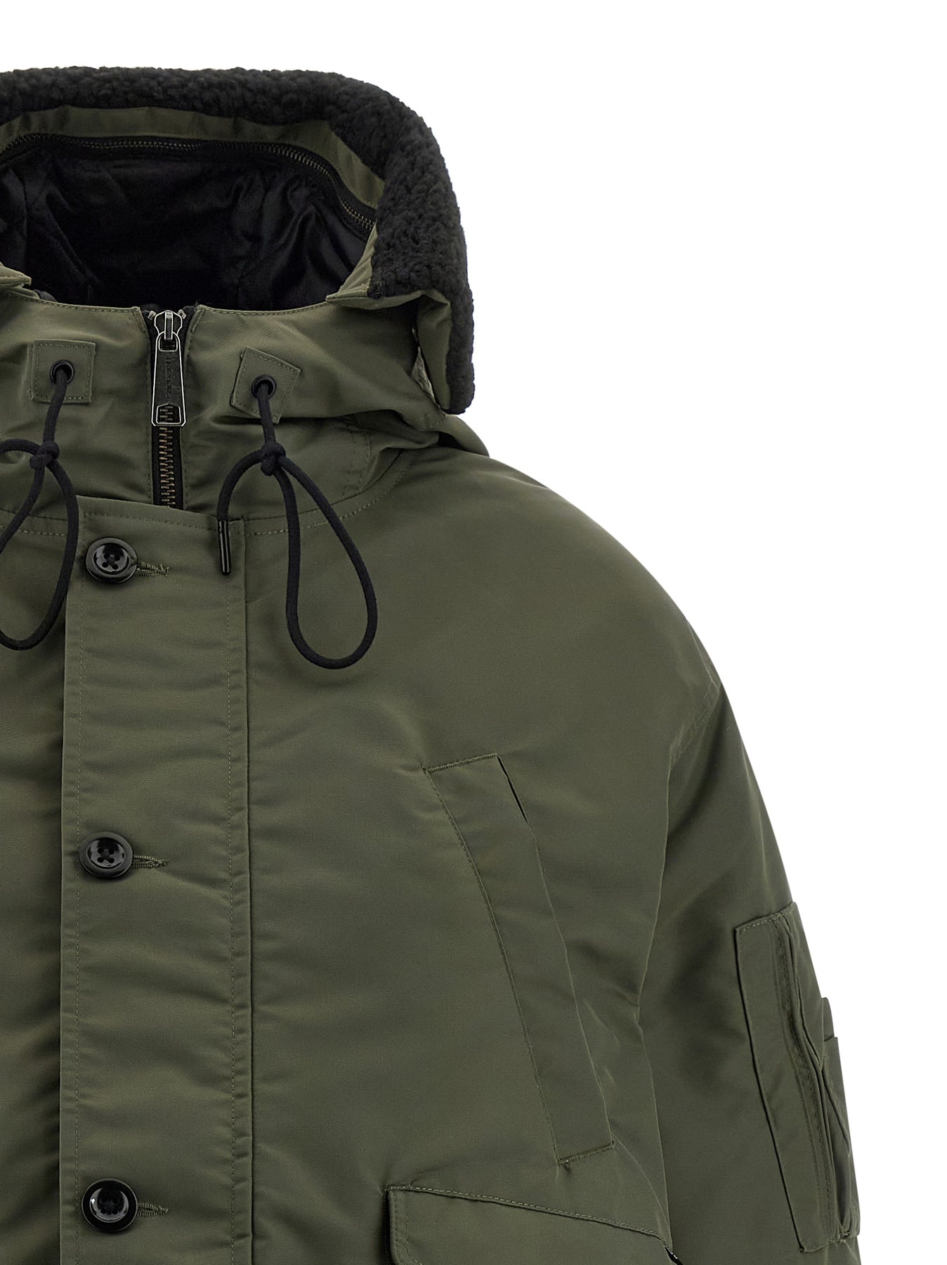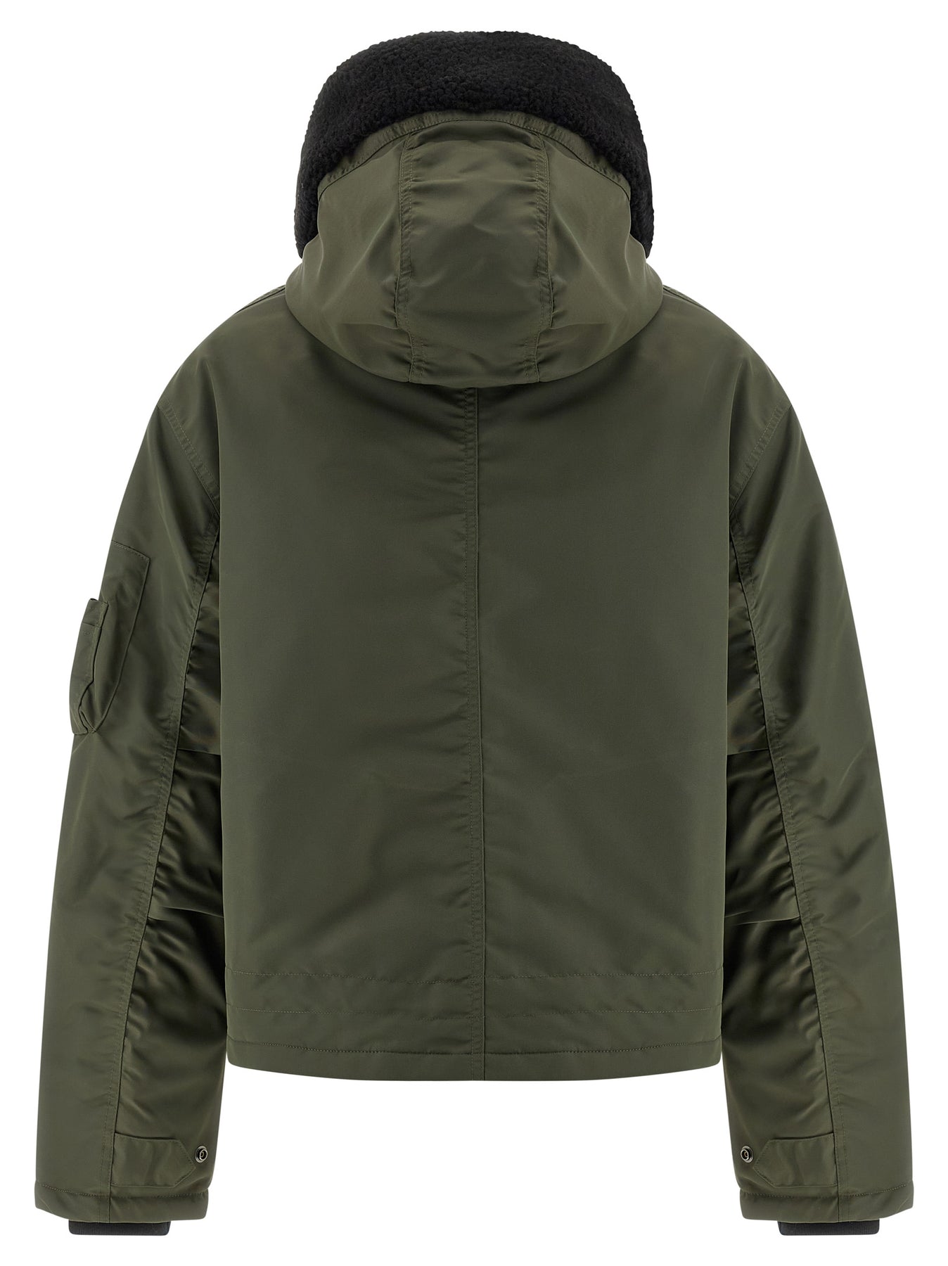 'Oltera' water-repellent medium weight nylon fabric jacket, diamond-shaped quilted lining, adjustable hood with removable teddy-effect fleece insert, crop style, high neck, front zip and button closure, pockets, long sleeves with stretch knit cuffs, drawstring on the hem.
