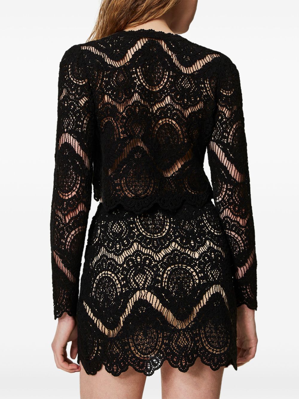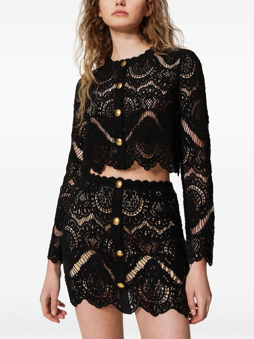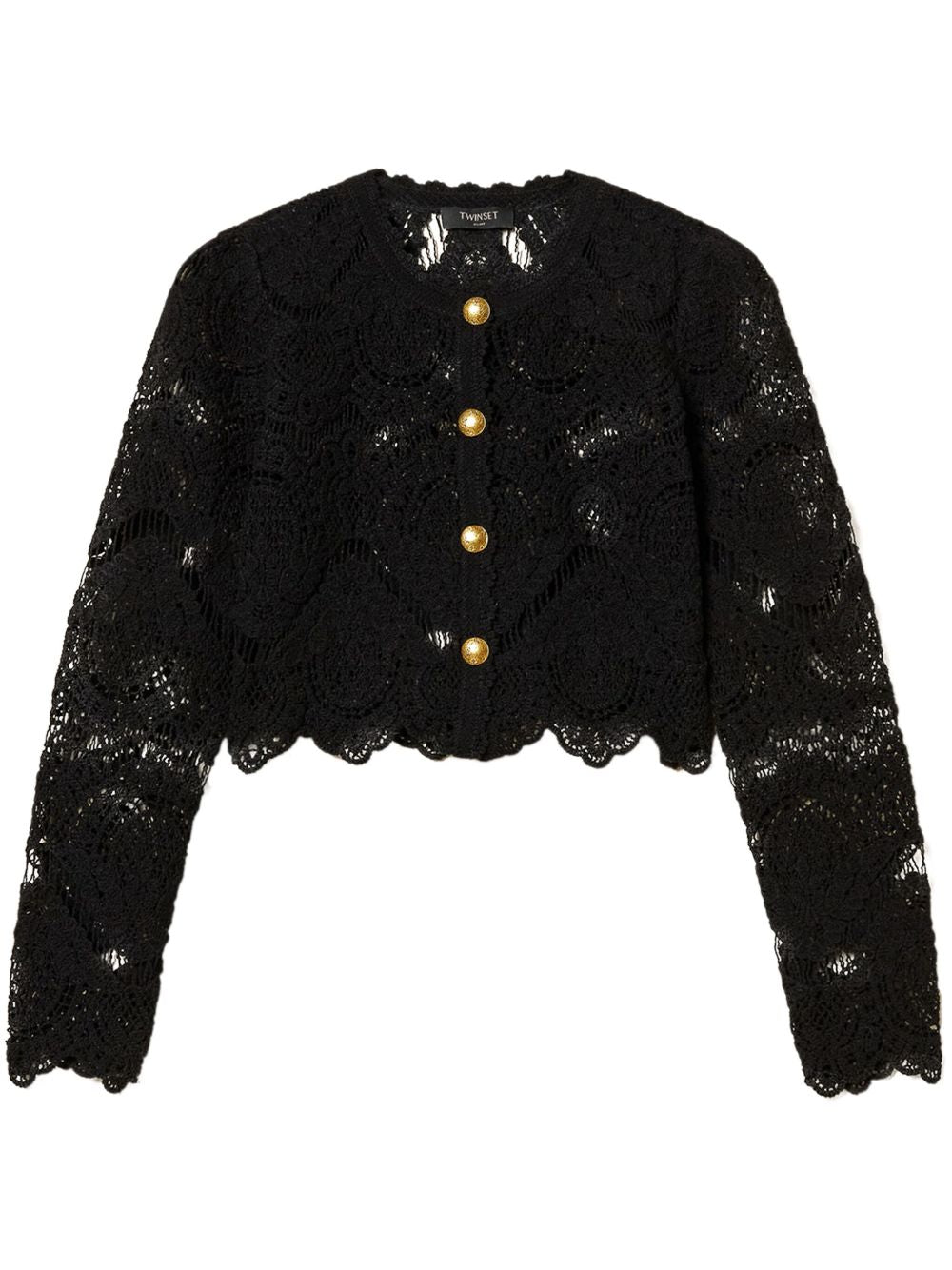 black front button fastening scallop edge cropped