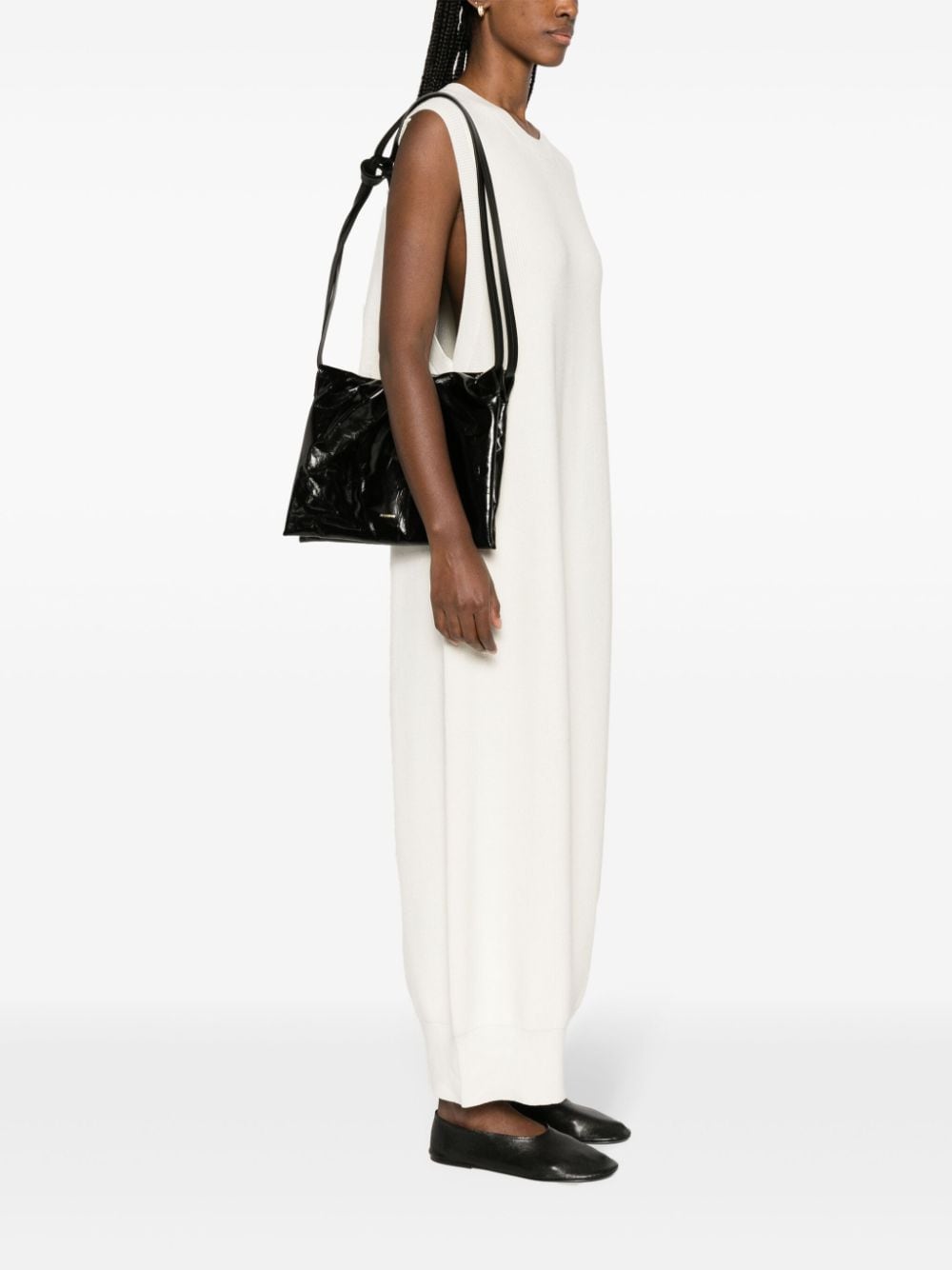 black calf leather grained texture debossed logo to the front magnetic fastening adjustable shoulder strap partitioned compartment internal card slot debossed internal logo full lining This piece comes complete with a protective dust bag.