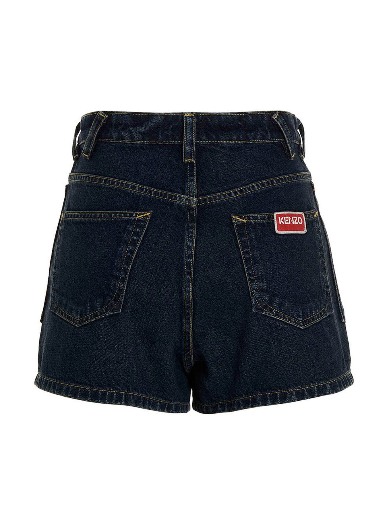 Denim cotton shorts with a zip and button closure, pockets and a leather logo patch at the back.