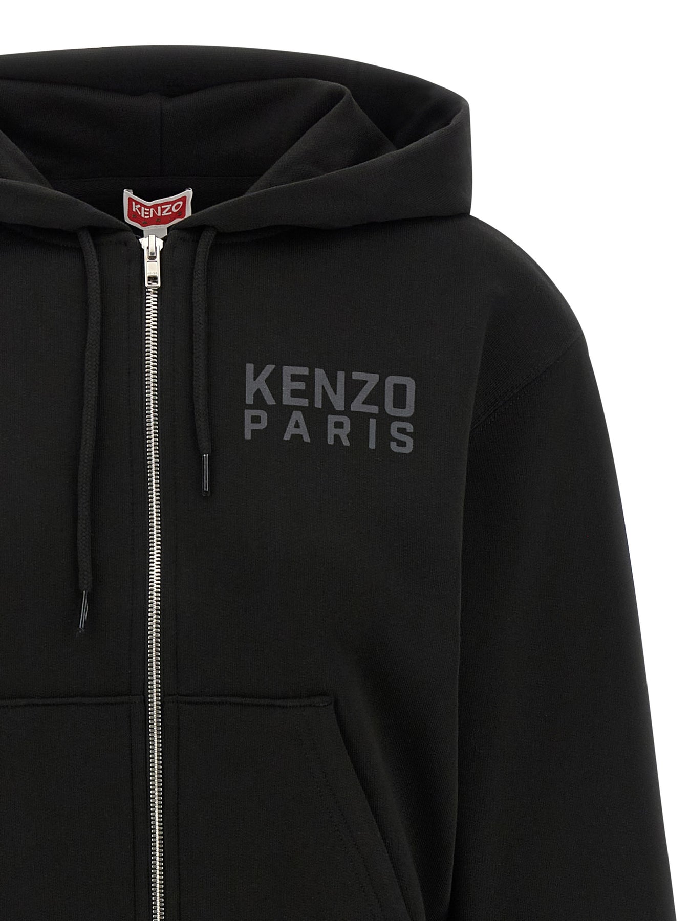 Lightly fleece cotton hoodie with 'KENZO Happy Tiger' print on the front and back, front zip closure, pockets, long sleeves with cuffs and dropped shoulders.