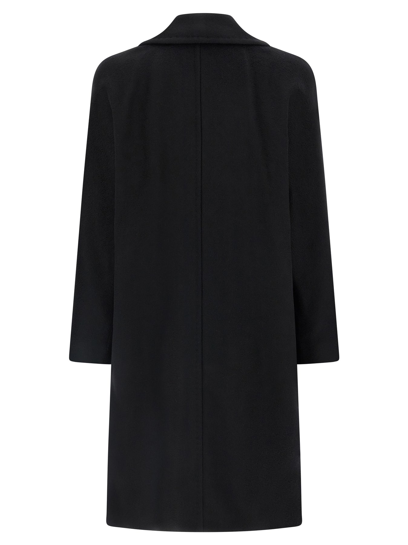 Agenda' virgin wool coat with viscose monogram logo lining, double-breasted style with front button closure, lapel collar, pockets, long sleeves with dropped shoulders.