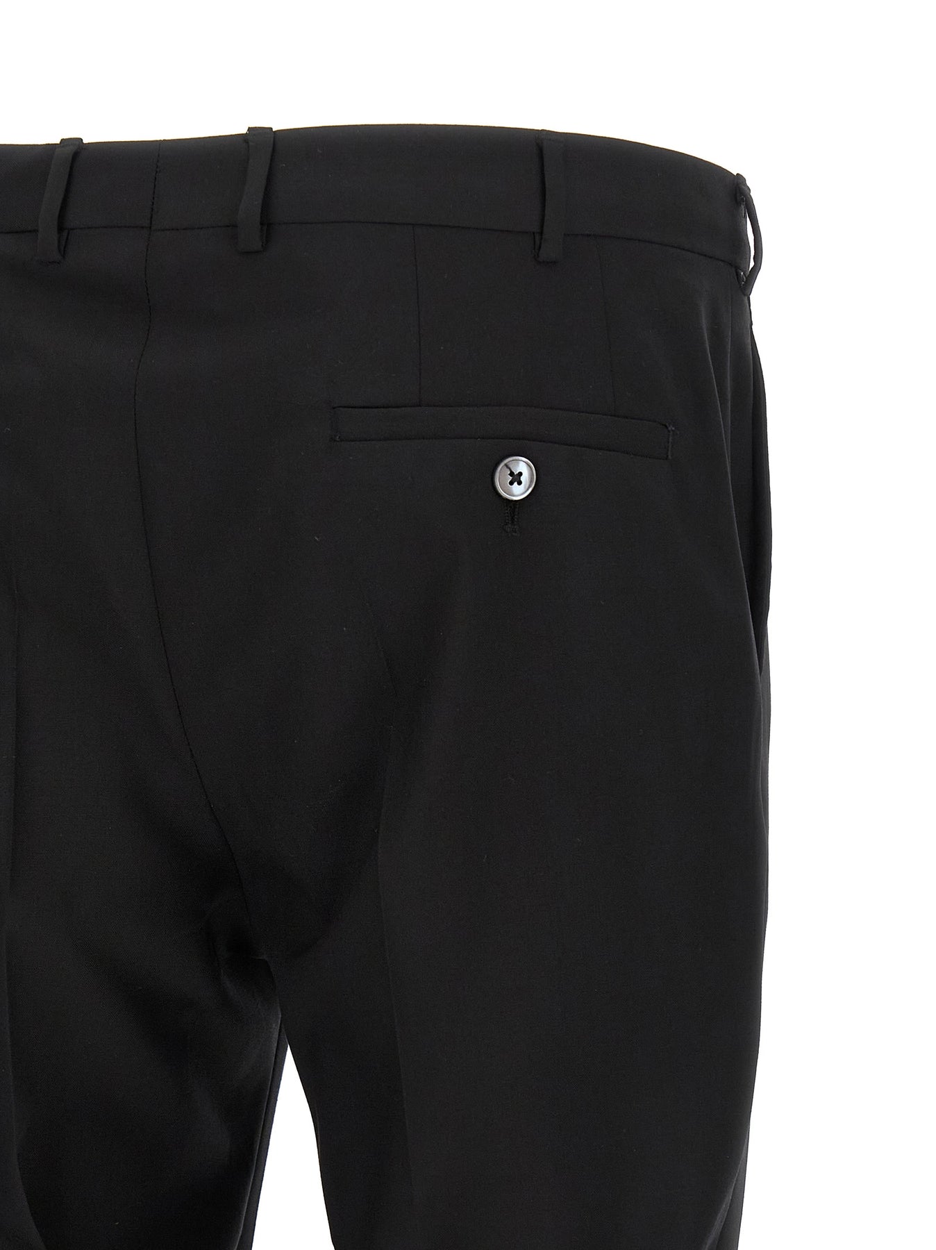 'linea Cerimonia' wool trousers, stretched pleat, front 'americane' pockets, back welt pockets, front zip and button closure, viscose lining.