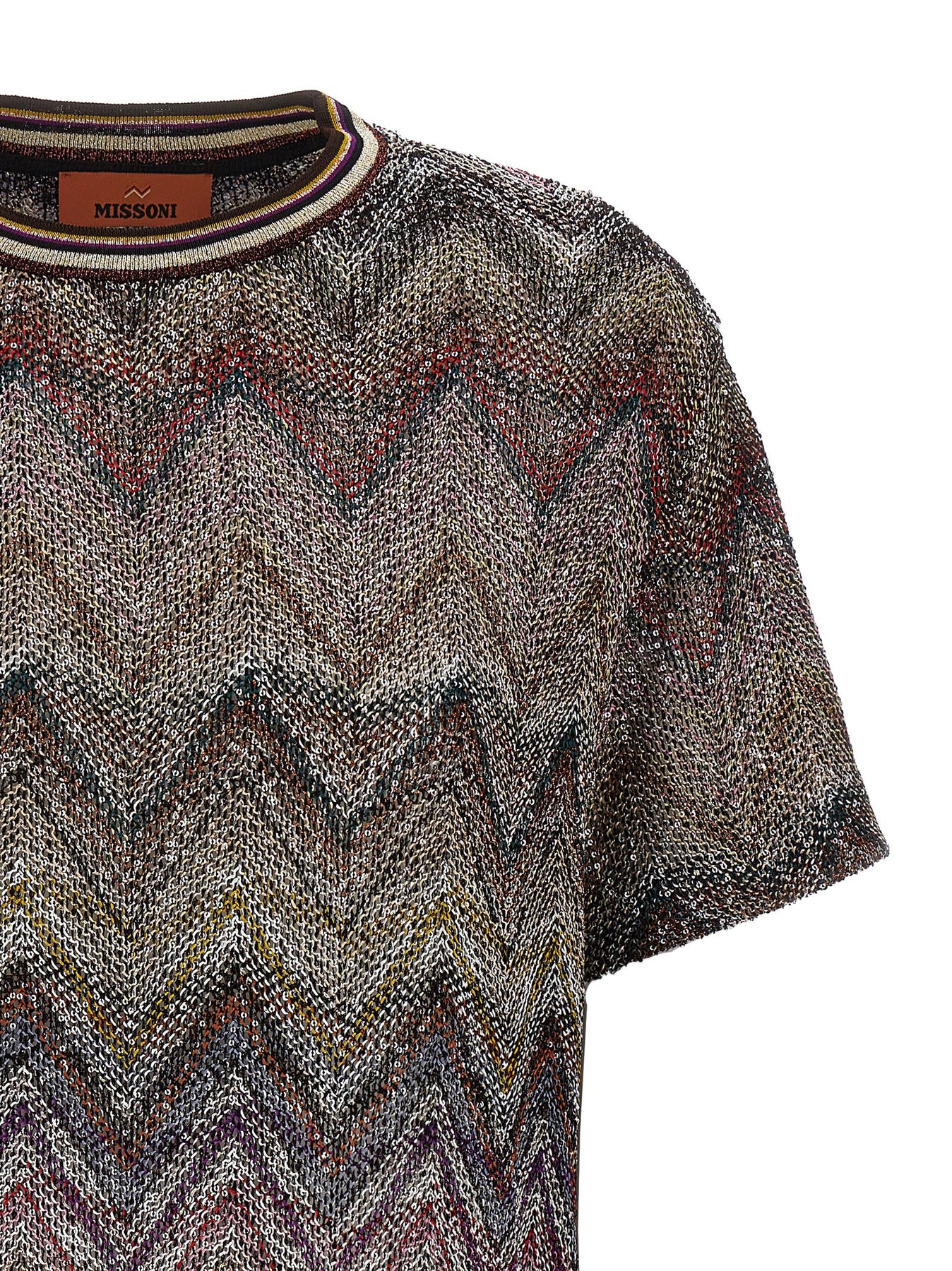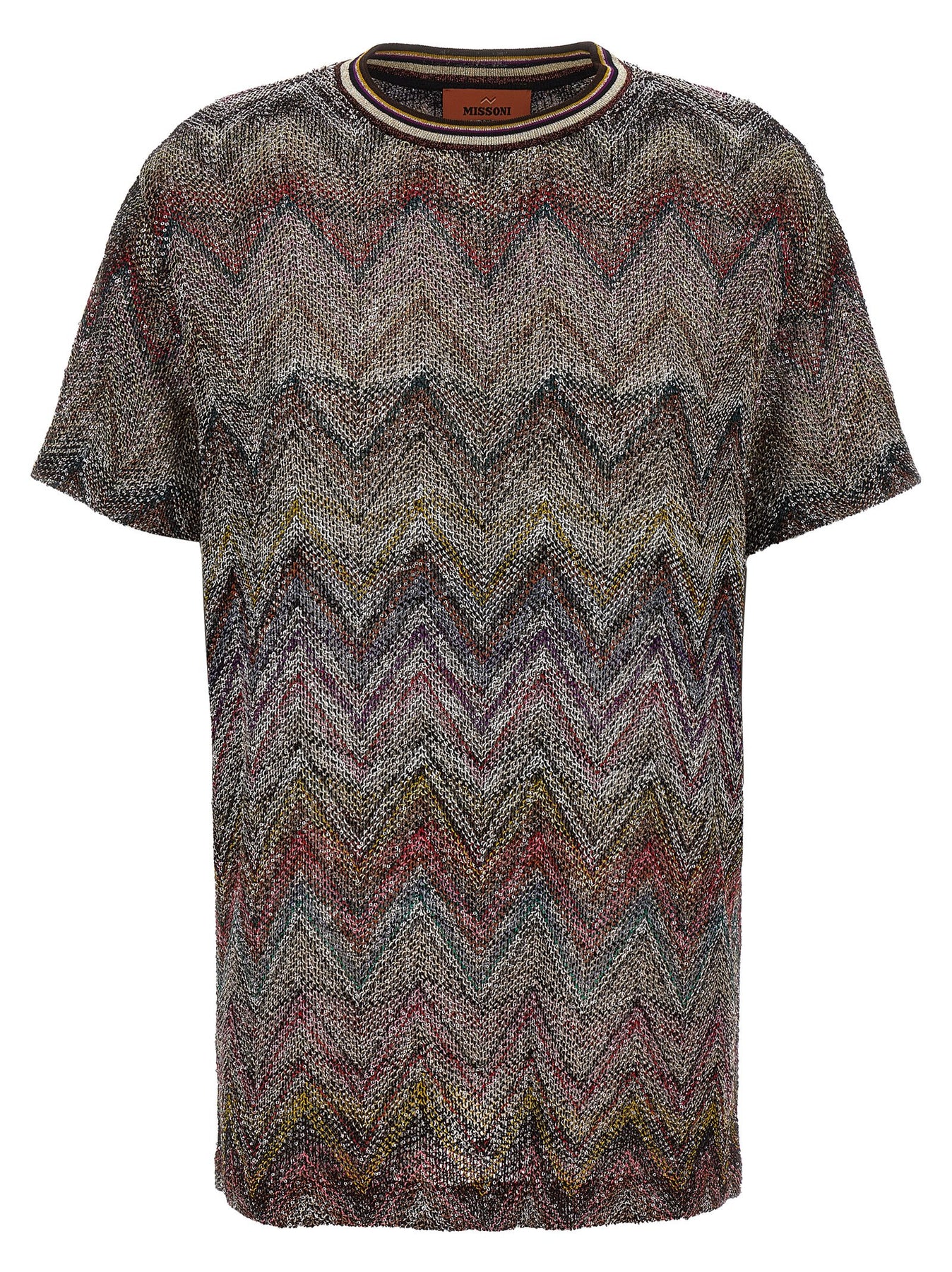 'Caperdoni' lurex knit t-shirt with all-over micro sequins, crew neck, short sleeves.