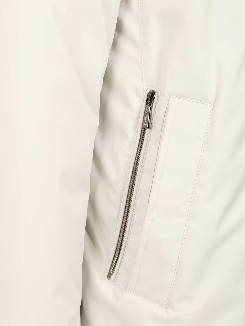 Smooth duster coat from the Acqua line. Padded with goose down and made of gabardine. Detachable and adjustable hood with storm flaps closed with snaps. Double front closure with a double-slider zip and hidden snaps. Vertical welt pockets at the waist with zip closures. Adjustable cuffs with exposed snaps. Aerator vents at the bottom for increased breathability. Fully quilted interior. Interior trim with logo tape.