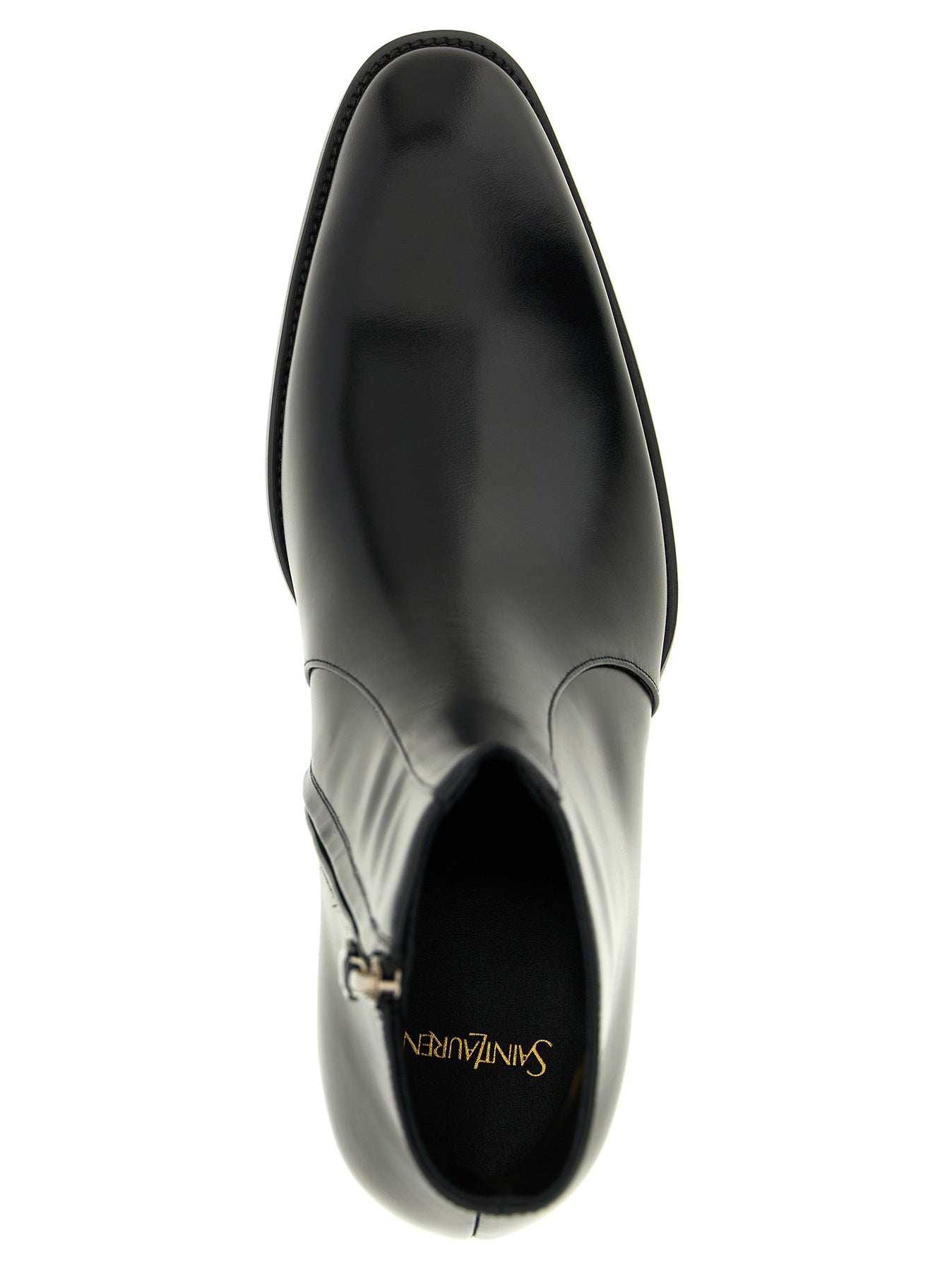 'Roman' smooth leather ankle boots with almond toe, side zip closure, Cuban heel, leather sole.