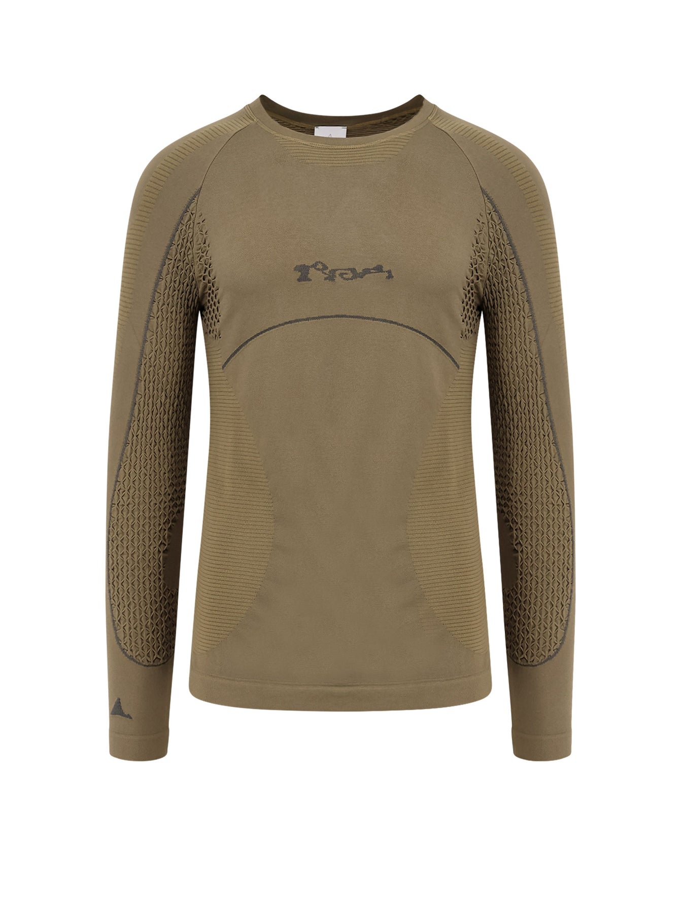Ribbed crew-neck Long sleeves Logo embroidery on the front Made in Italy 97% polyamide 3% elastane SKU: RBMW0406YA49_GRN0010