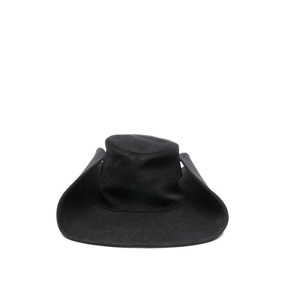 black wool brushed effect monogram appliqué teardrop crown curved wide brim pull-on style