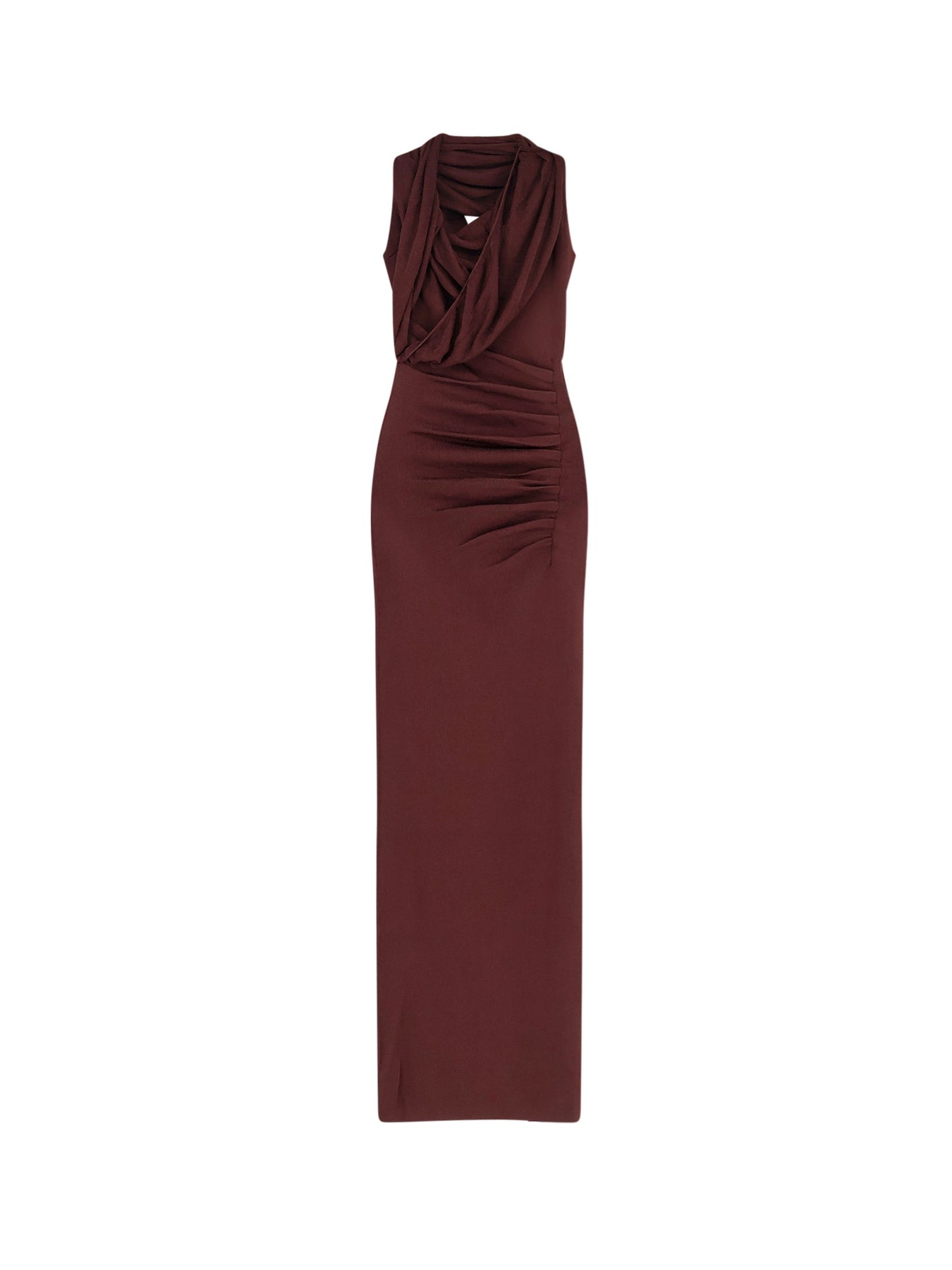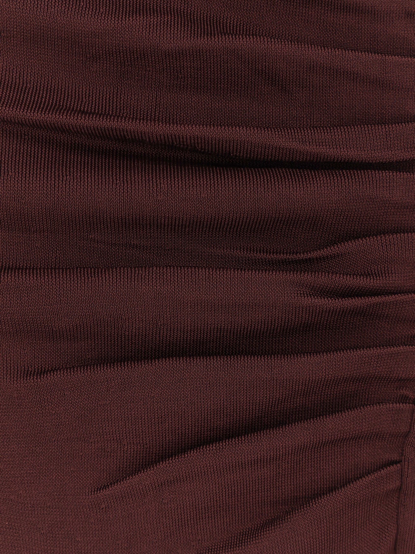 Draped neckline Sleeveless Unlined One shoulder Side drape 79% viscose, 17% cotton, 4% polyamide SKU: RS26108MBRBROWN