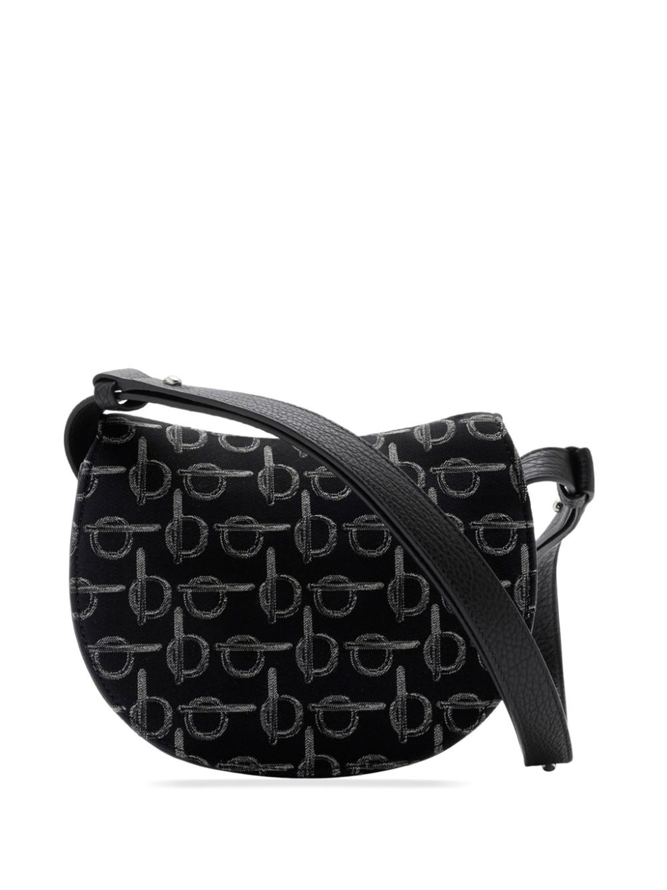 Burberry mini "Rocking Horse" shoulder bag, constructed from a blend of polyester and cotton. Compact structure and rigid silhouette. Front panel exhibits an embossed B motif. Adjustable shoulder strap allows different cross-body carrying solutions. The top closure features an essential metal detail integrated into the design. All seams are linear and visible, emphasizing the precision of the construction. || - Adjustable shoulder strap - B motif on the front panel - Metallic detail on the top closure