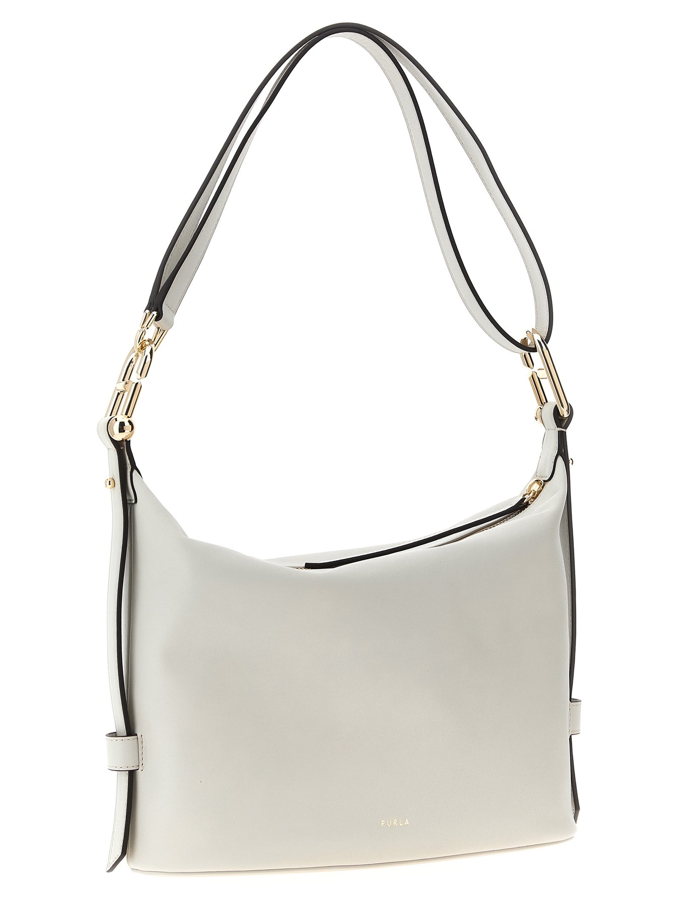 'Nuvola Hobo M' leather shoulder bag with adjustable and removable handle, zip closure, metal logo detail snap hooks.
