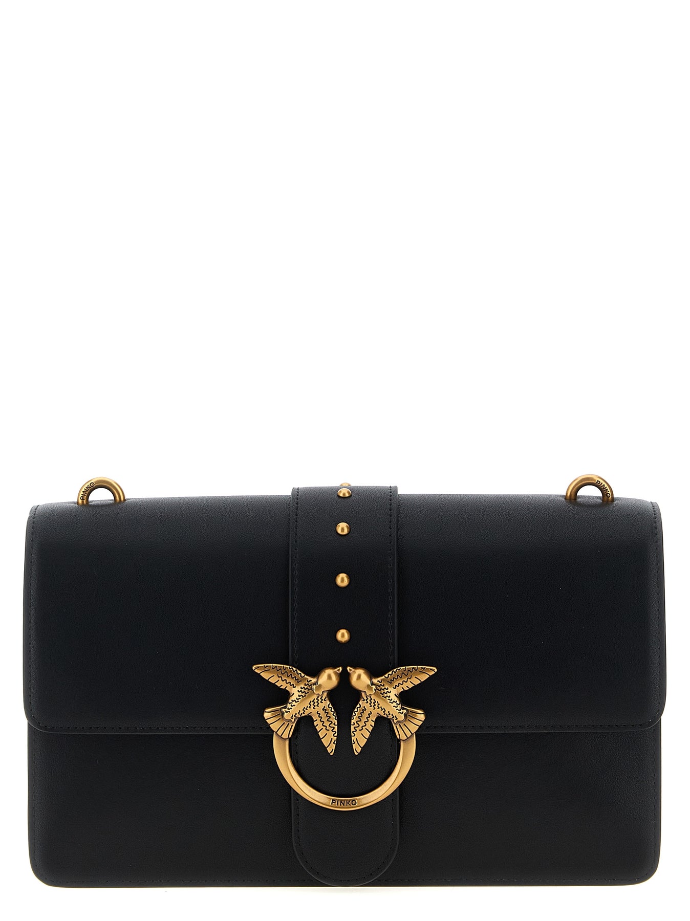 ‘Love One Classic’ crossbody bag in silk-touch leather, snap flap closure with studs and metallic ‘Love Birds Diamond Cut’ buckle on the front, side gussets, cotton lining, chain shoulder strap with removable leather shoulder pad.