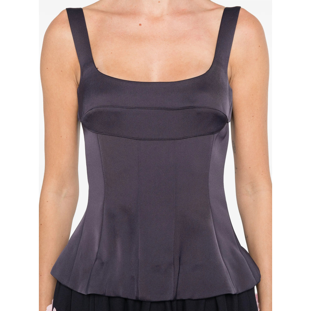 dark blue floral appliqué square neck sleeveless rear zip fastening gathered skirt