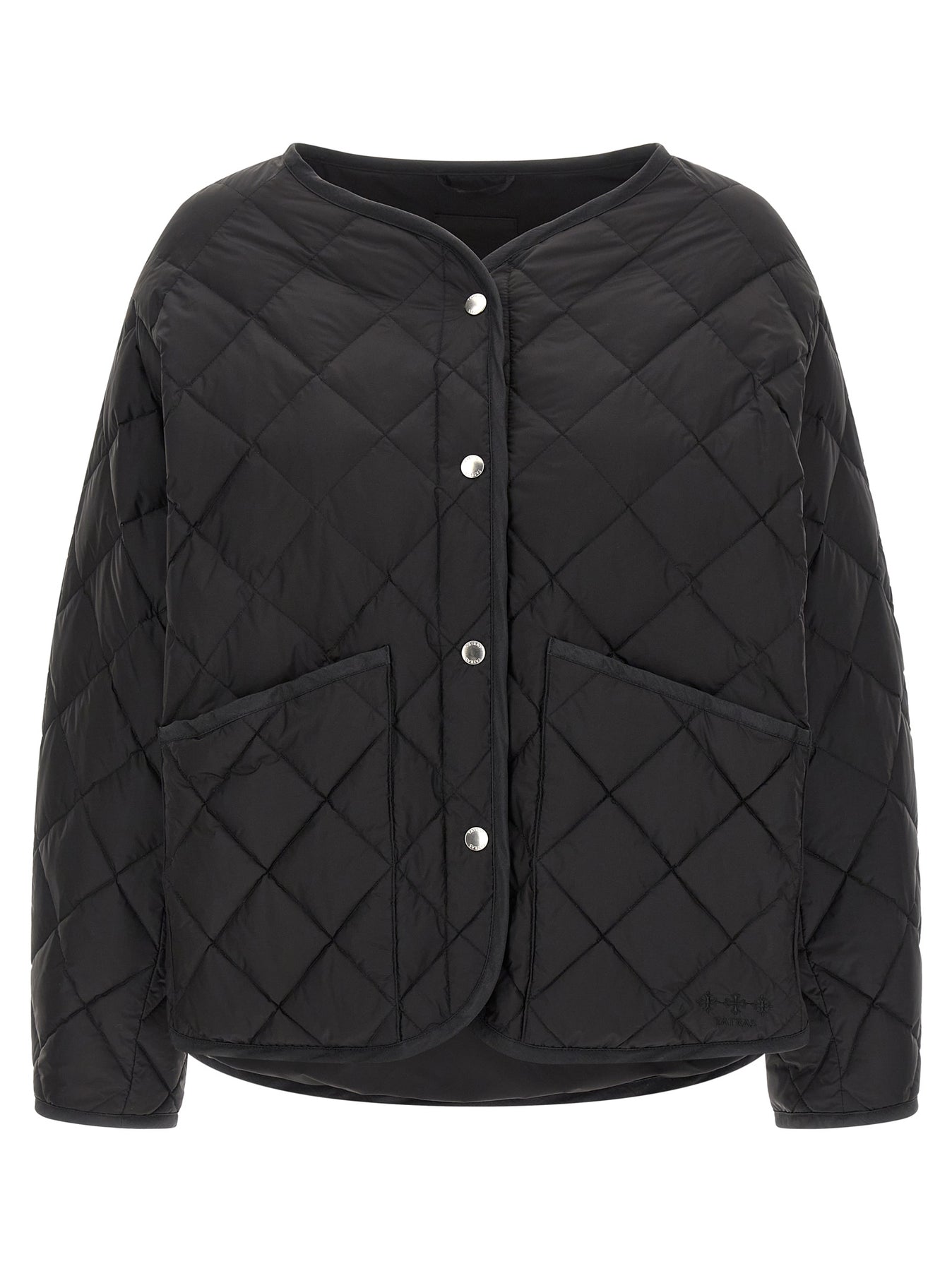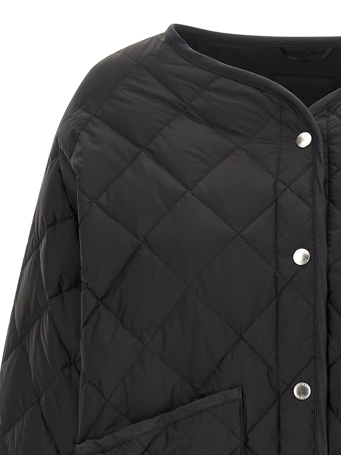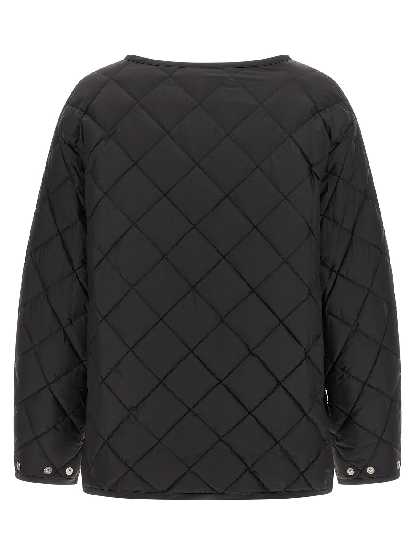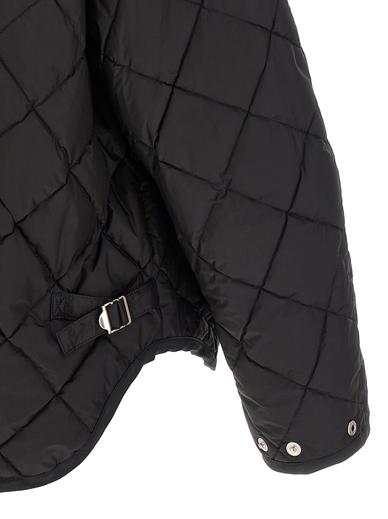 'Aster' nylon quilted check blouson with goose down padding, round neckline, front snap button closure, pockets with brushed fabric lining, long sleeves with adjustable cuffs and dropped shoulder, asymmetric hem, adjustable side straps.