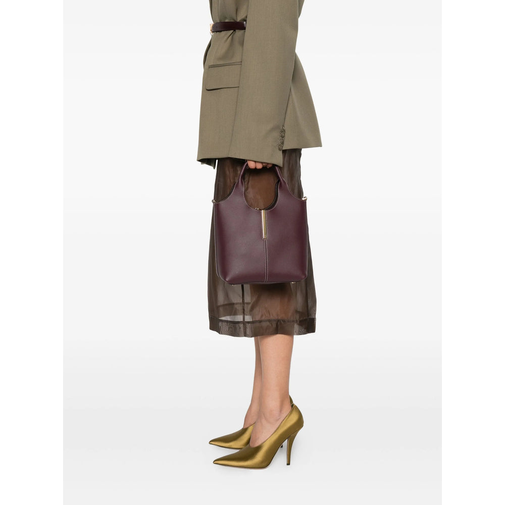 burgundy red calf leather top handles central clasp detachable shoulder strap This piece comes complete with a protective dust bag.
