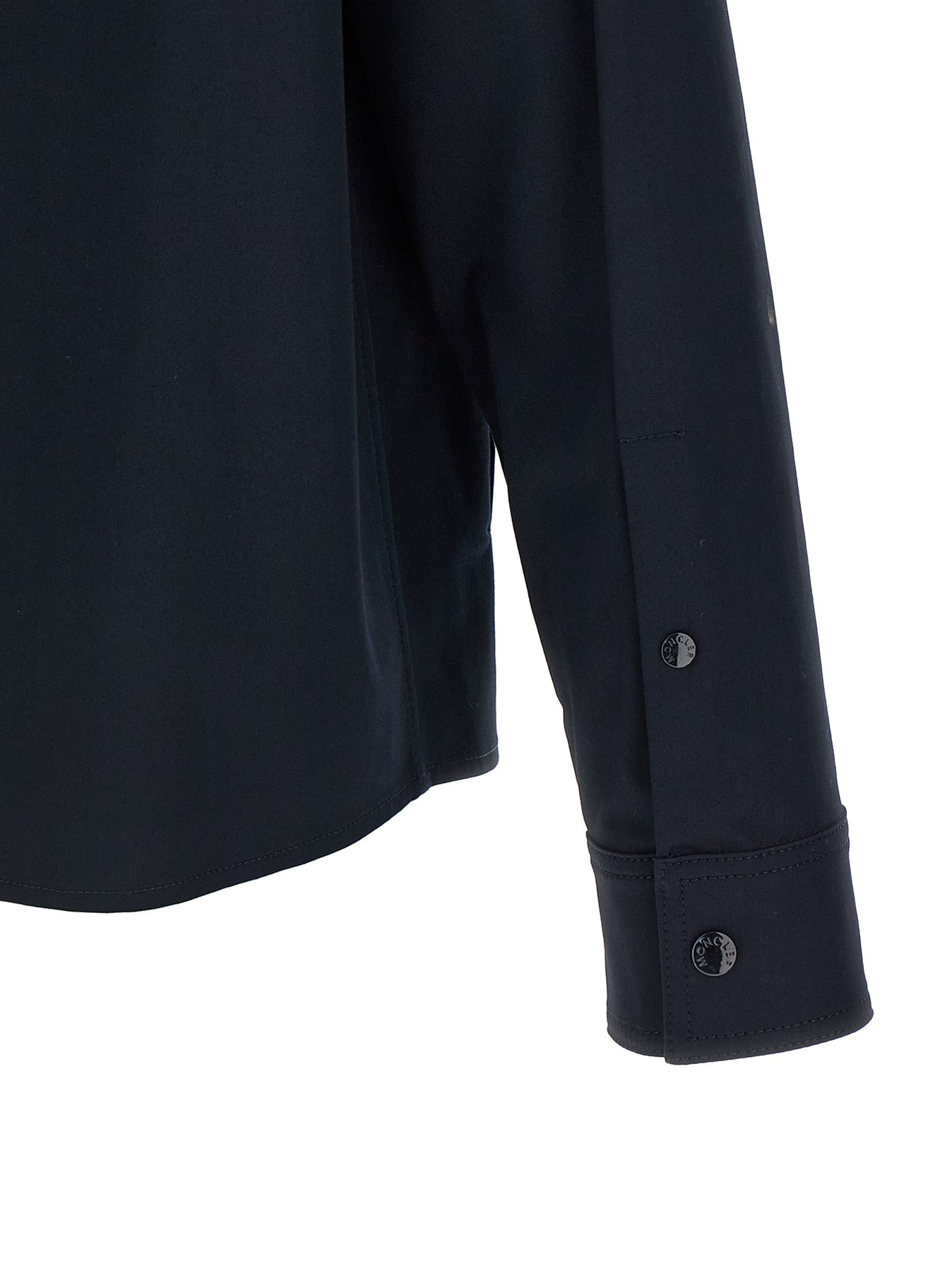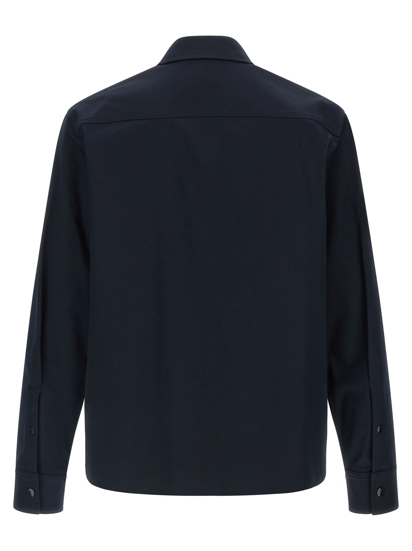 Cotton blend gabardine jacket, unlined, shirt collar, zip closure and felt logo patch on the front, pockets, long cuffed sleeves.