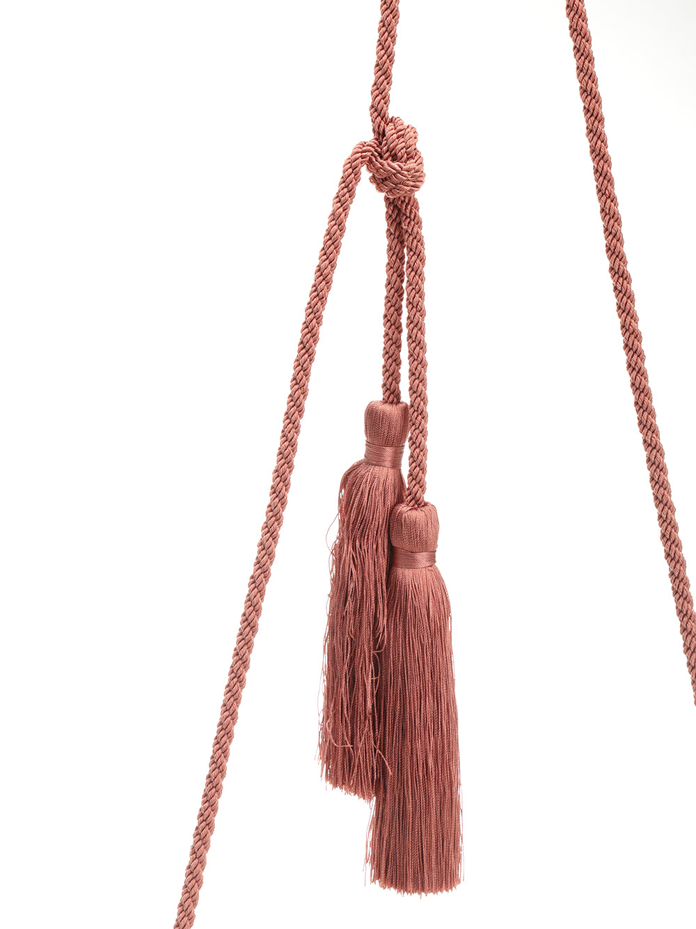 made of velvet with rope trim and logo with Swarovski®. Removable chain shoulder strap with magnetic closure