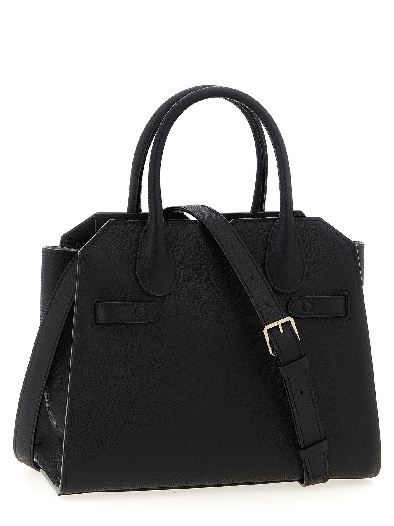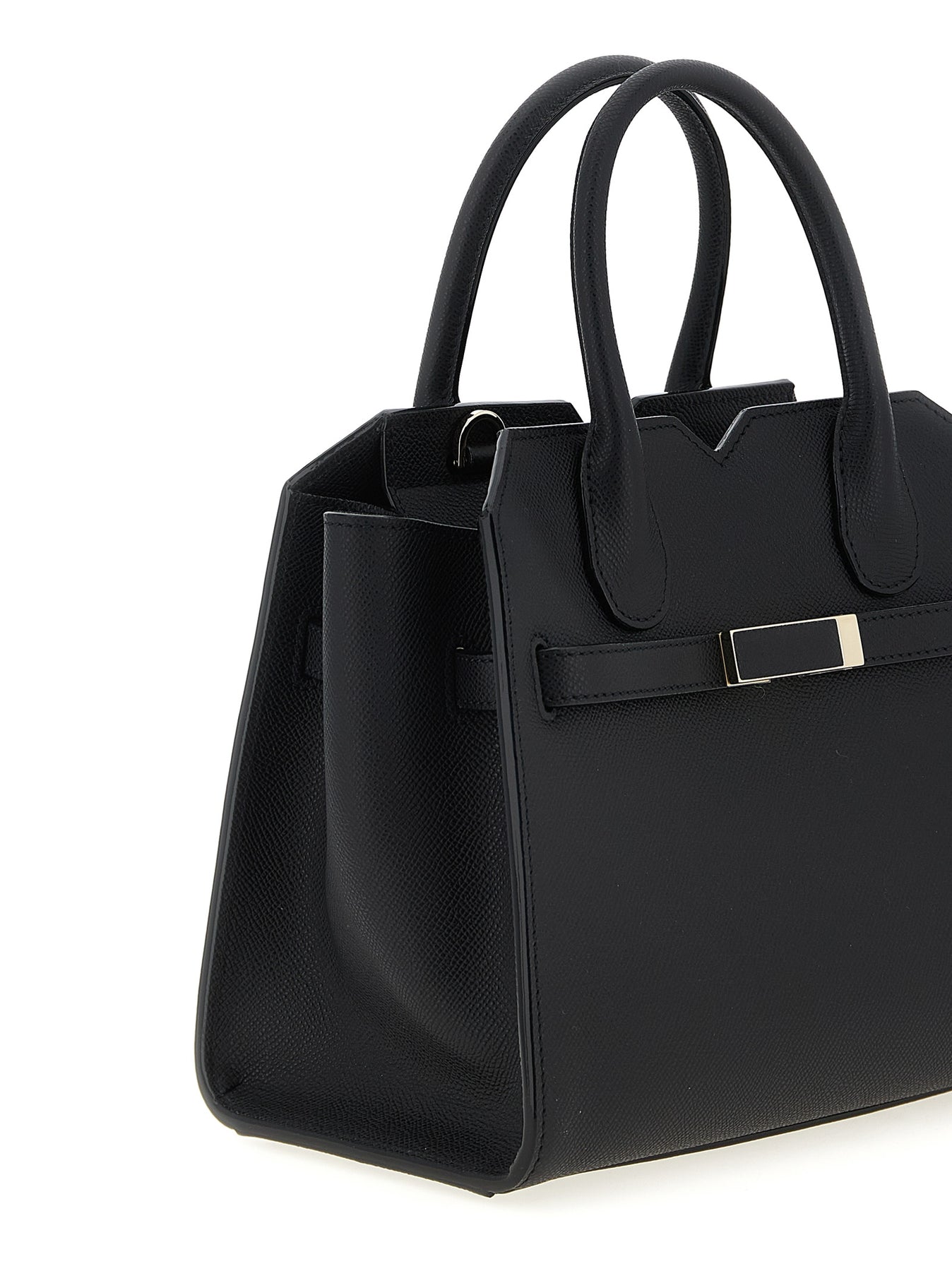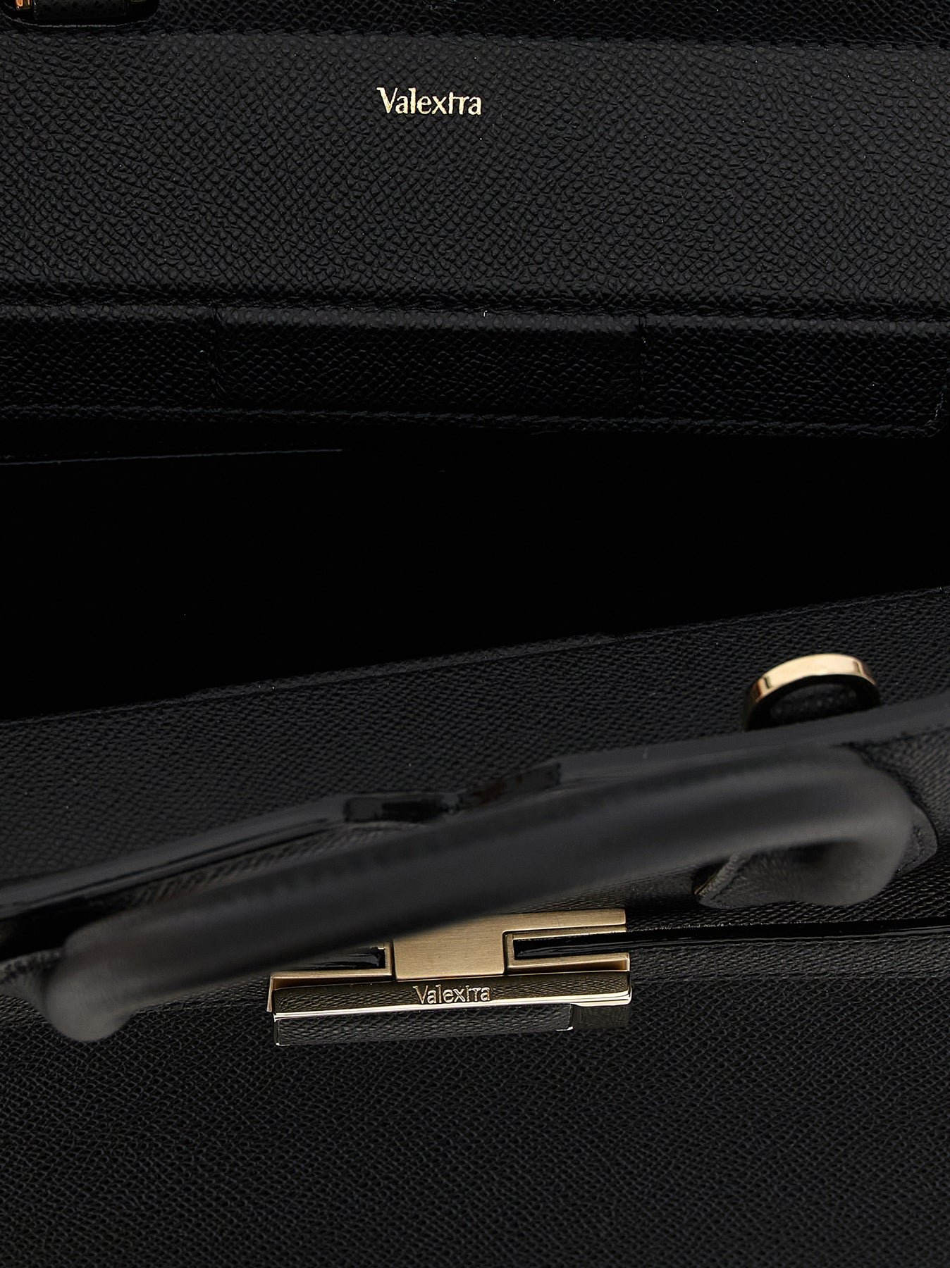'Milano' mini handbag in Millepunte Soft leather with suede lining, Costa Valextra piping, front adjustable strap, double handle, magnetic closure, metal details, adjustable and removable shoulder strap.