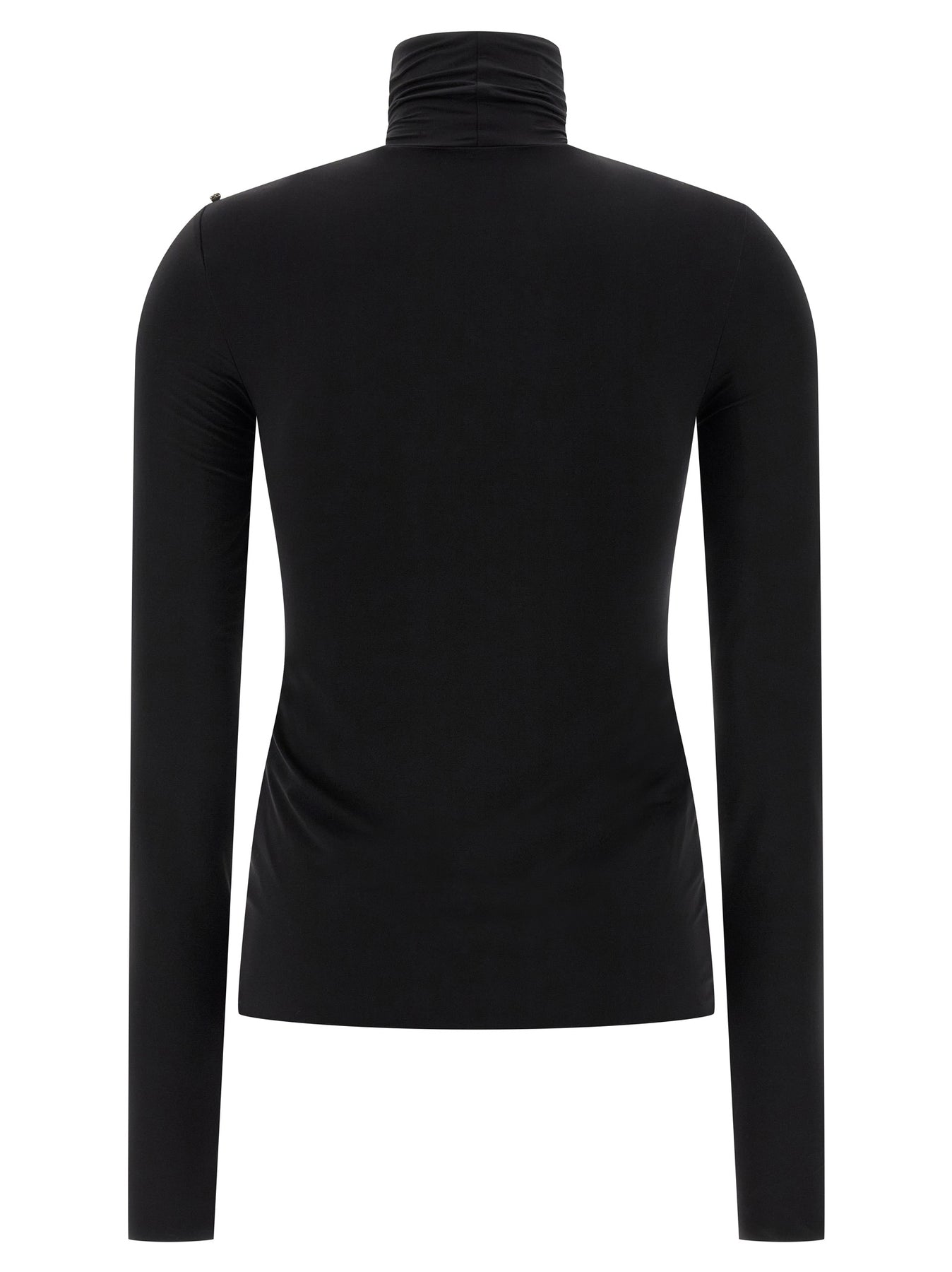 'Stone' sweater in lightweight stretch tech fabric, high neck, long sleeves.