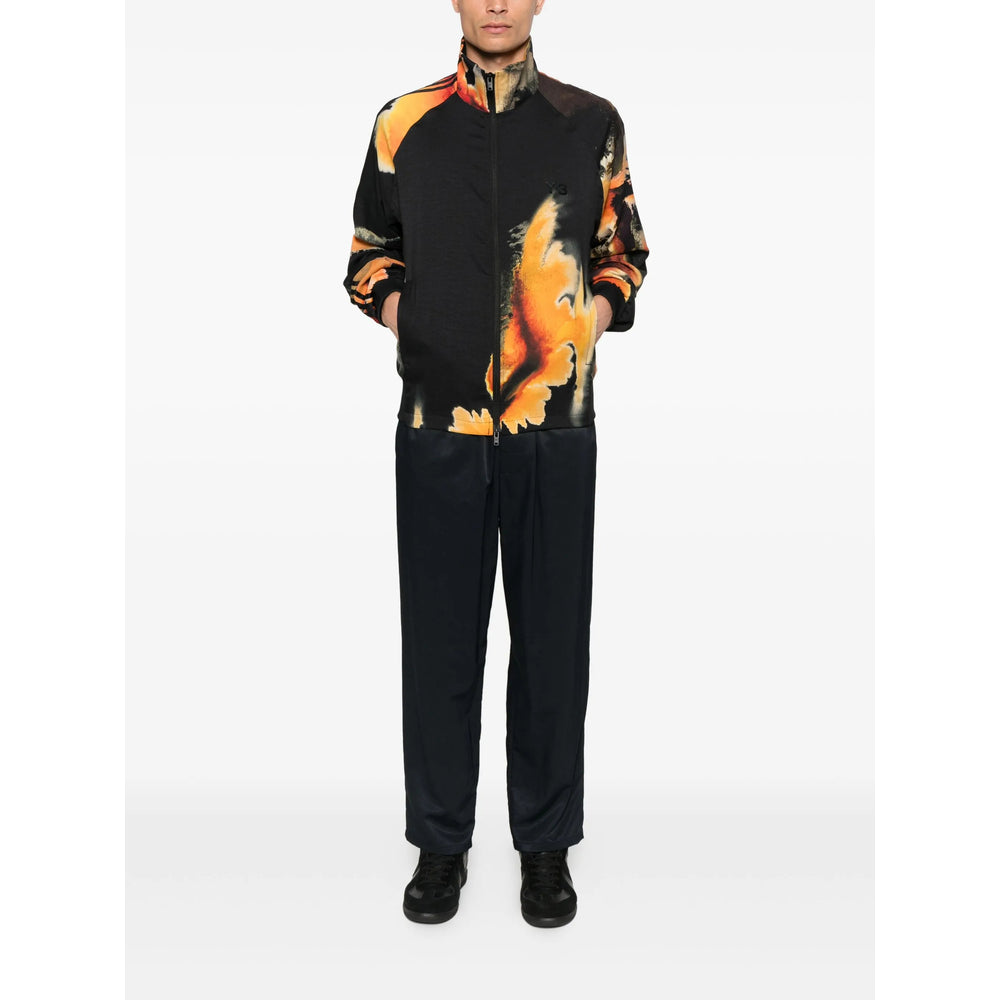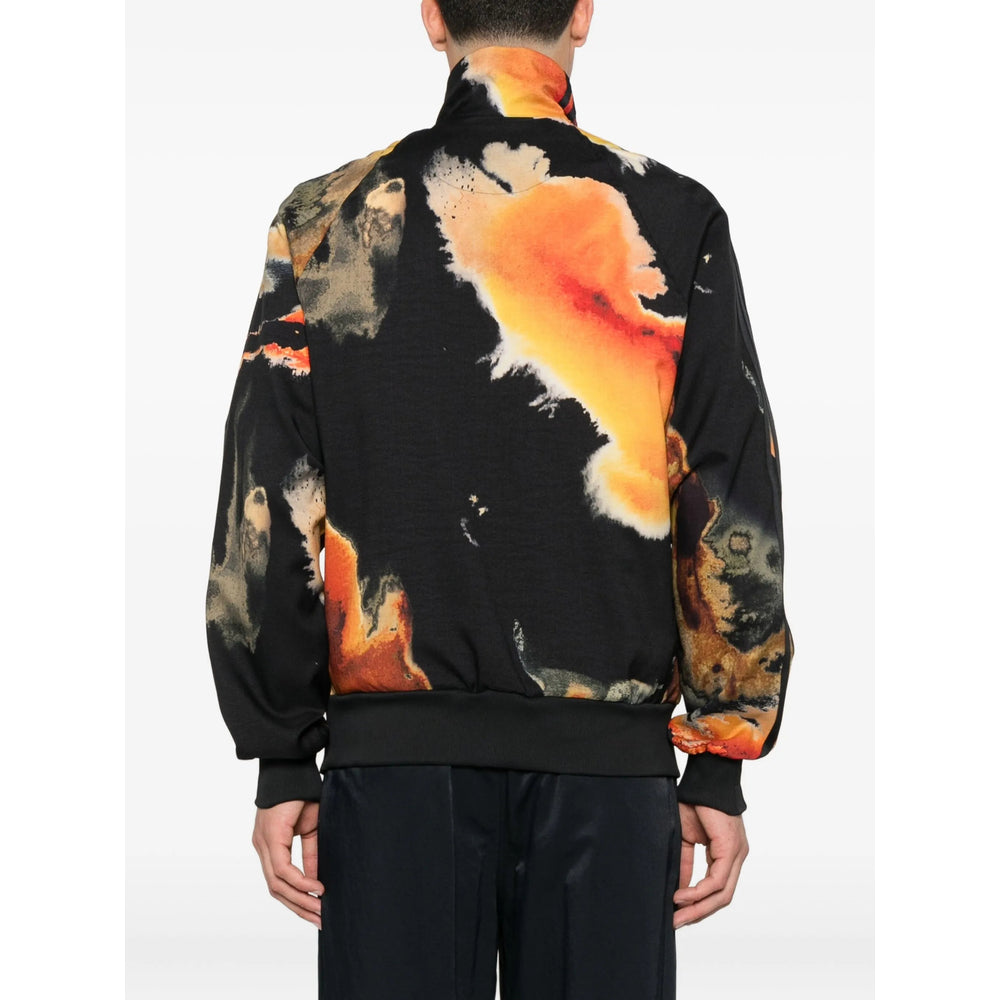 black and orange abstract pattern print zip fastening ribbed edges signature 3-Stripes detail mock collar
