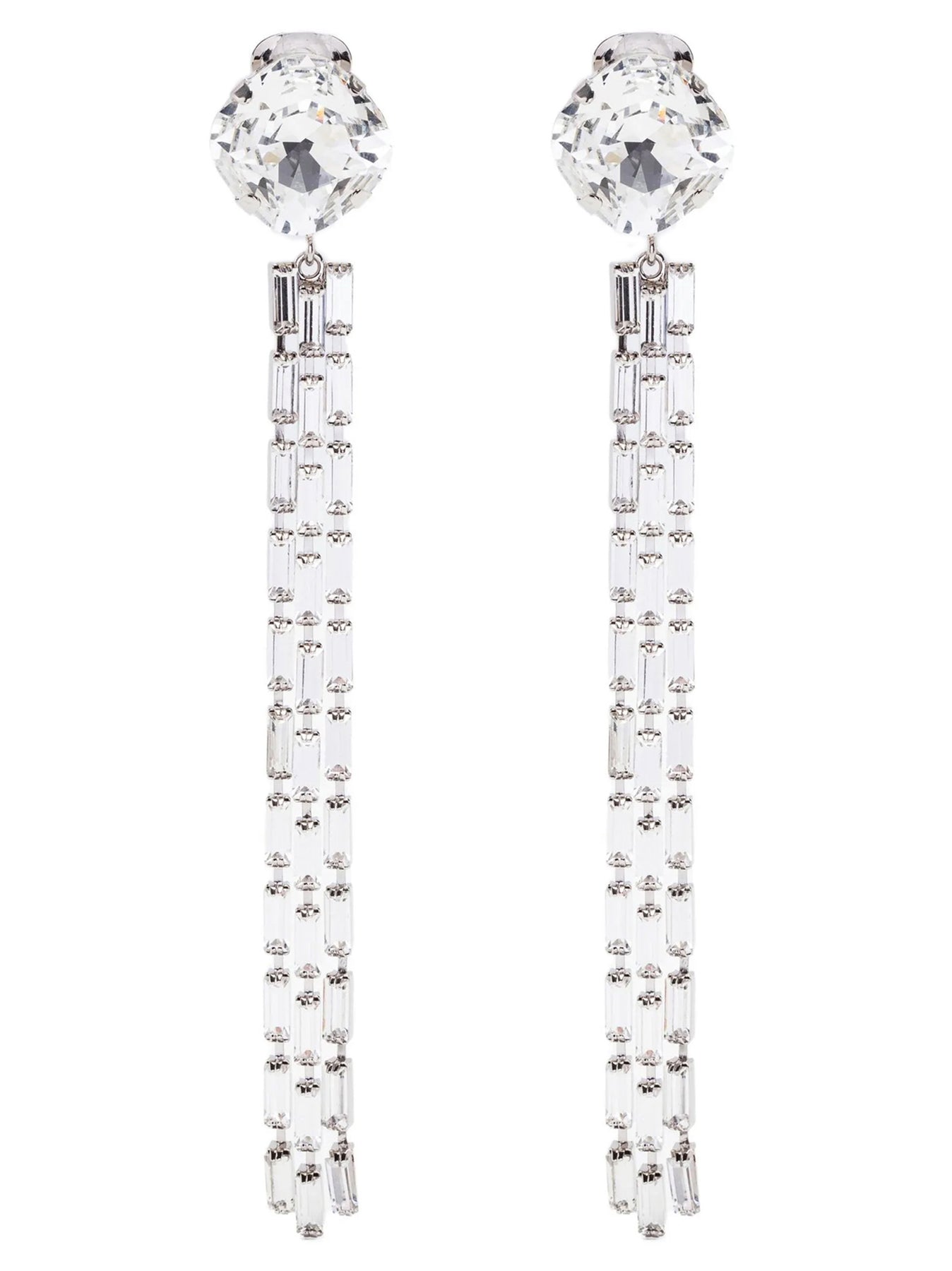 Metal earrings with stone and fringes with baguette-cut crystals, clip closure. NON-RENIBLE PRODUCT