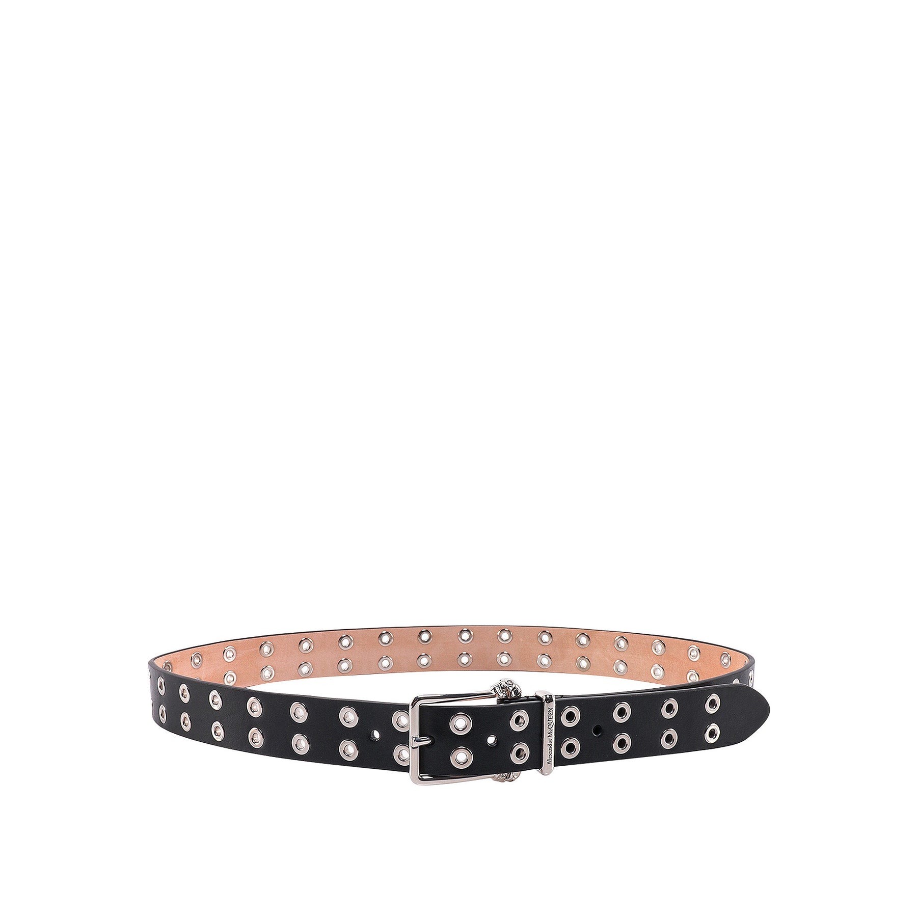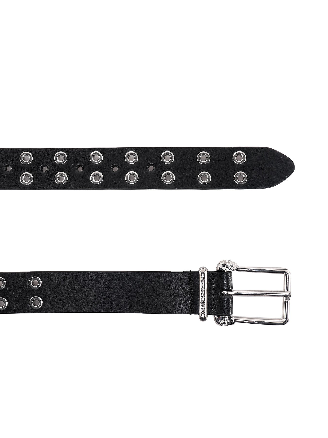 SKU: 5508781AALV_1000 - Adjustable closure metal buckle with iconic skull double holes detail made in italy leather