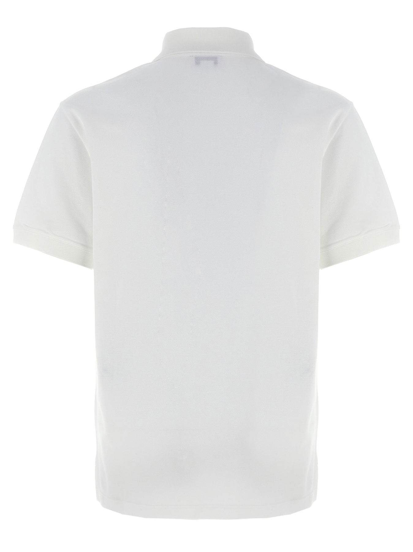 Polo shirt in piqué cotton with contrasting logo embroidery on the front, collar and buttons, short sleeves, side slits.