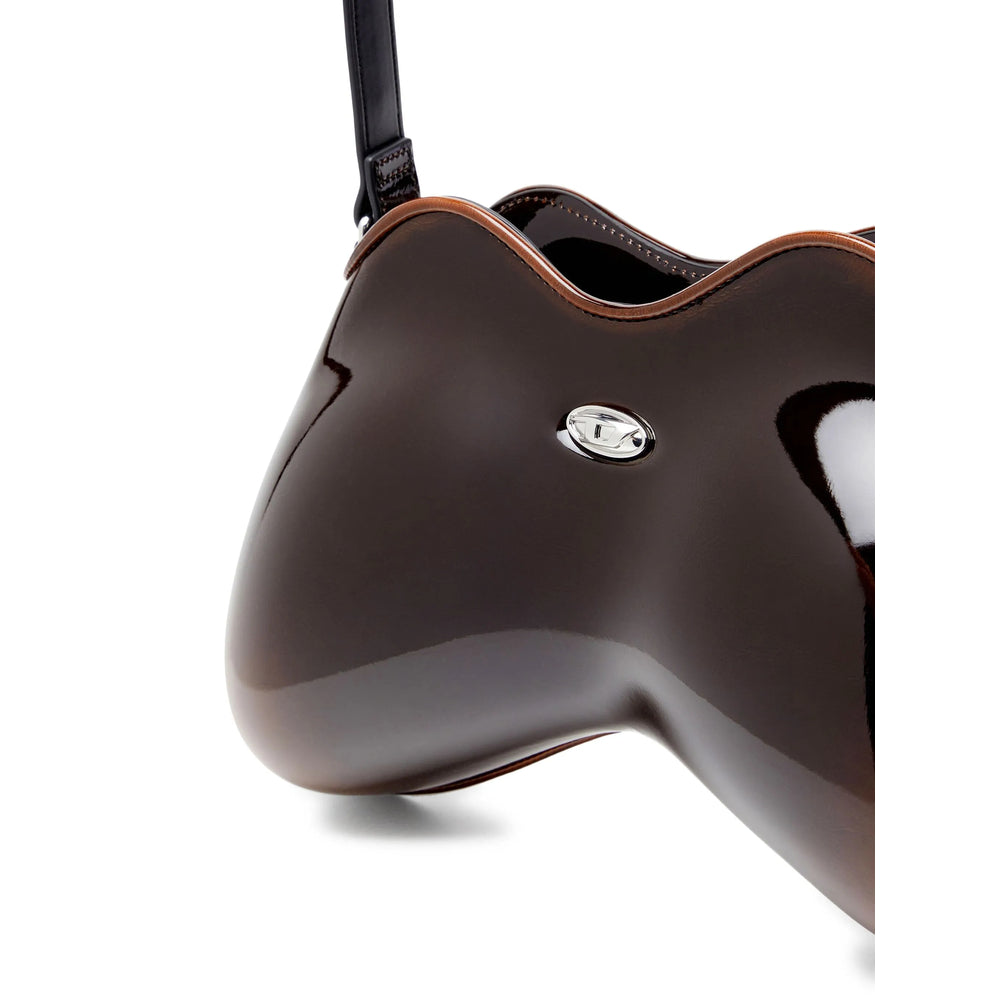 coffee brown top zip fastening single flat top handle internal zip-fastening pocket logo plaque