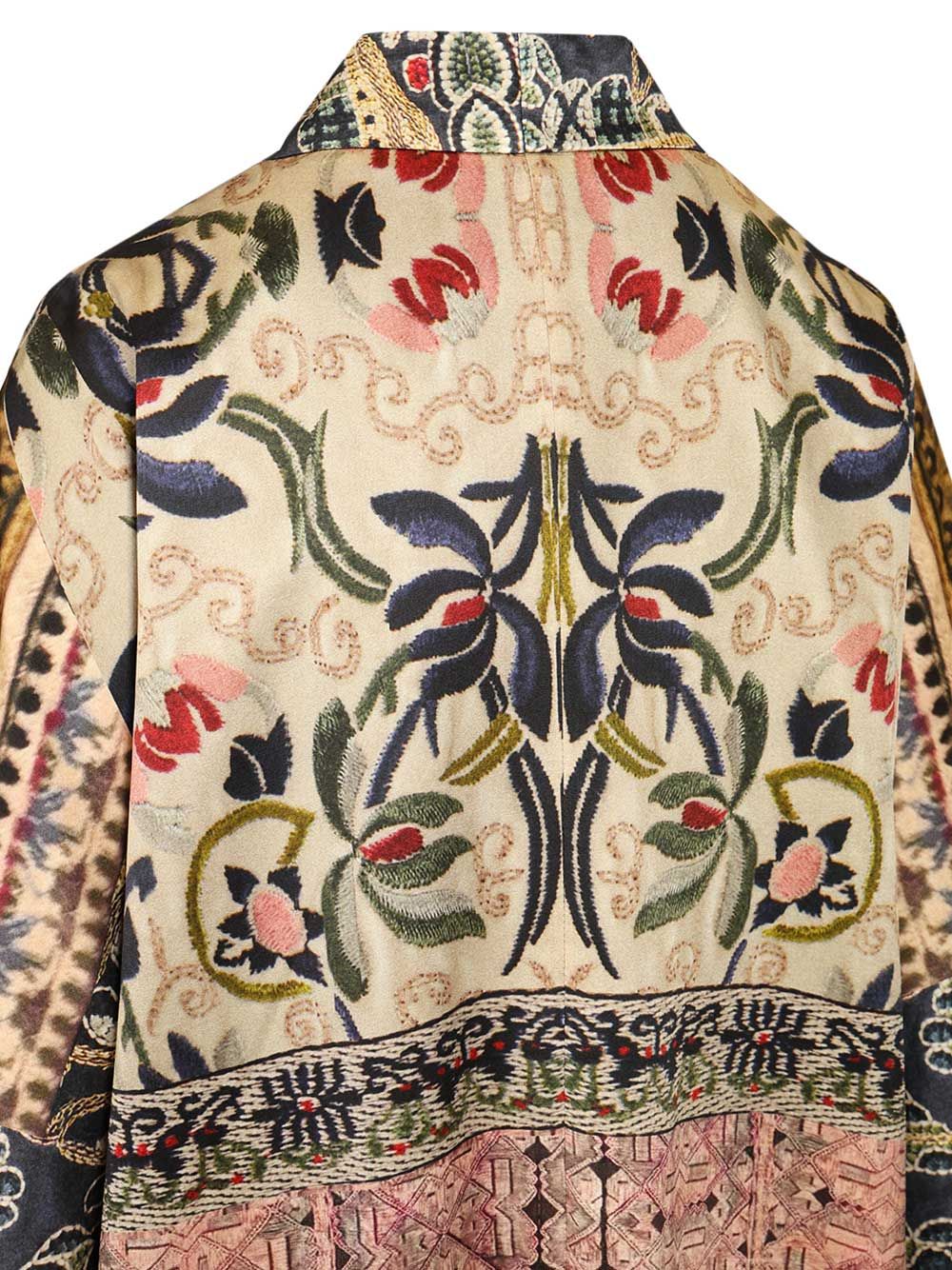 Silk kimono with all-over print, wide sleeves, soft fit