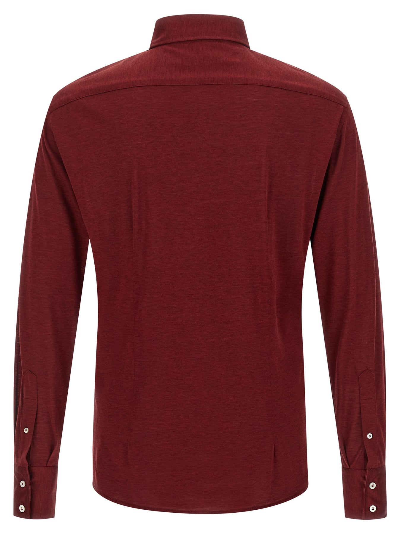 Silk and cotton jersey shirt with French collar, front button closure, long cuffed sleeves.