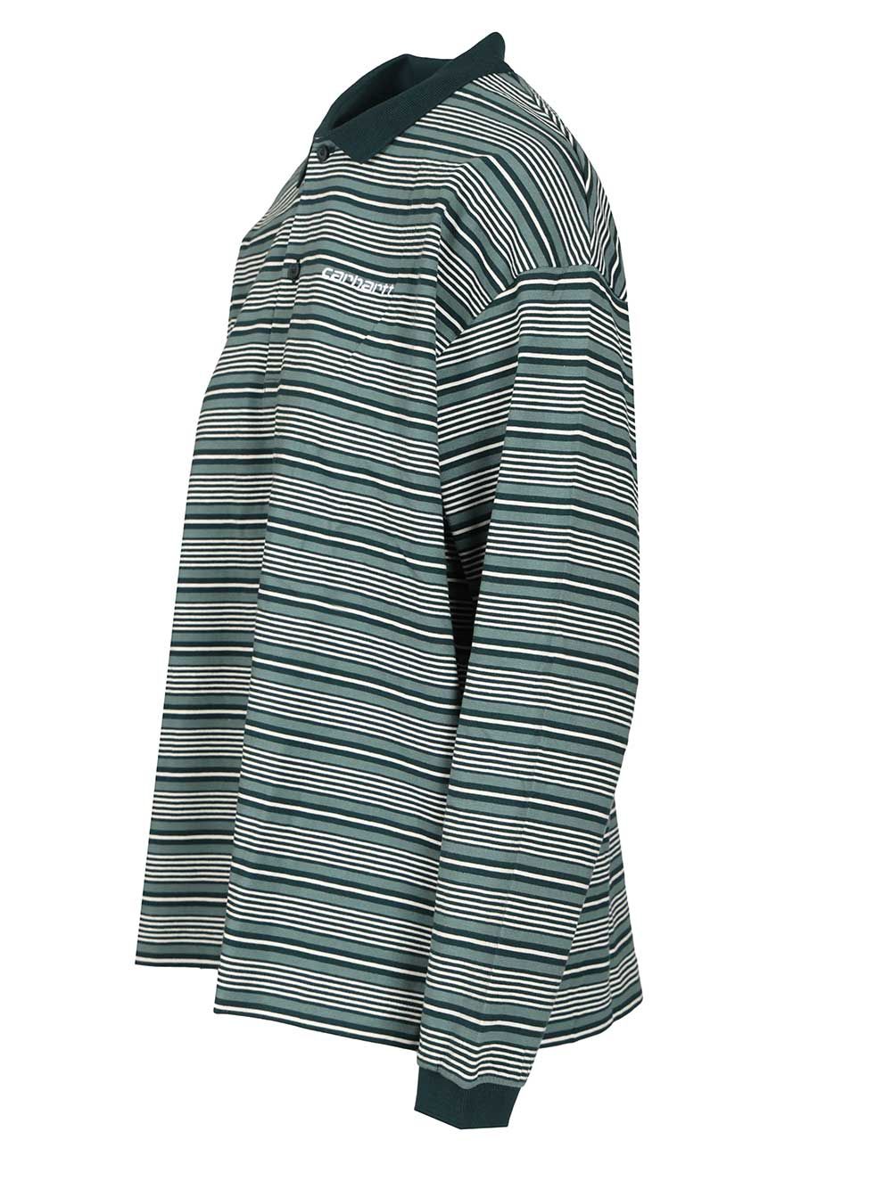 "L/S Largo" polo shirt in cotton jersey by Carhartt Wip, with a loose fit, allover stripes, flat knit collar and cuffs, and an embroidered logo on the chest.