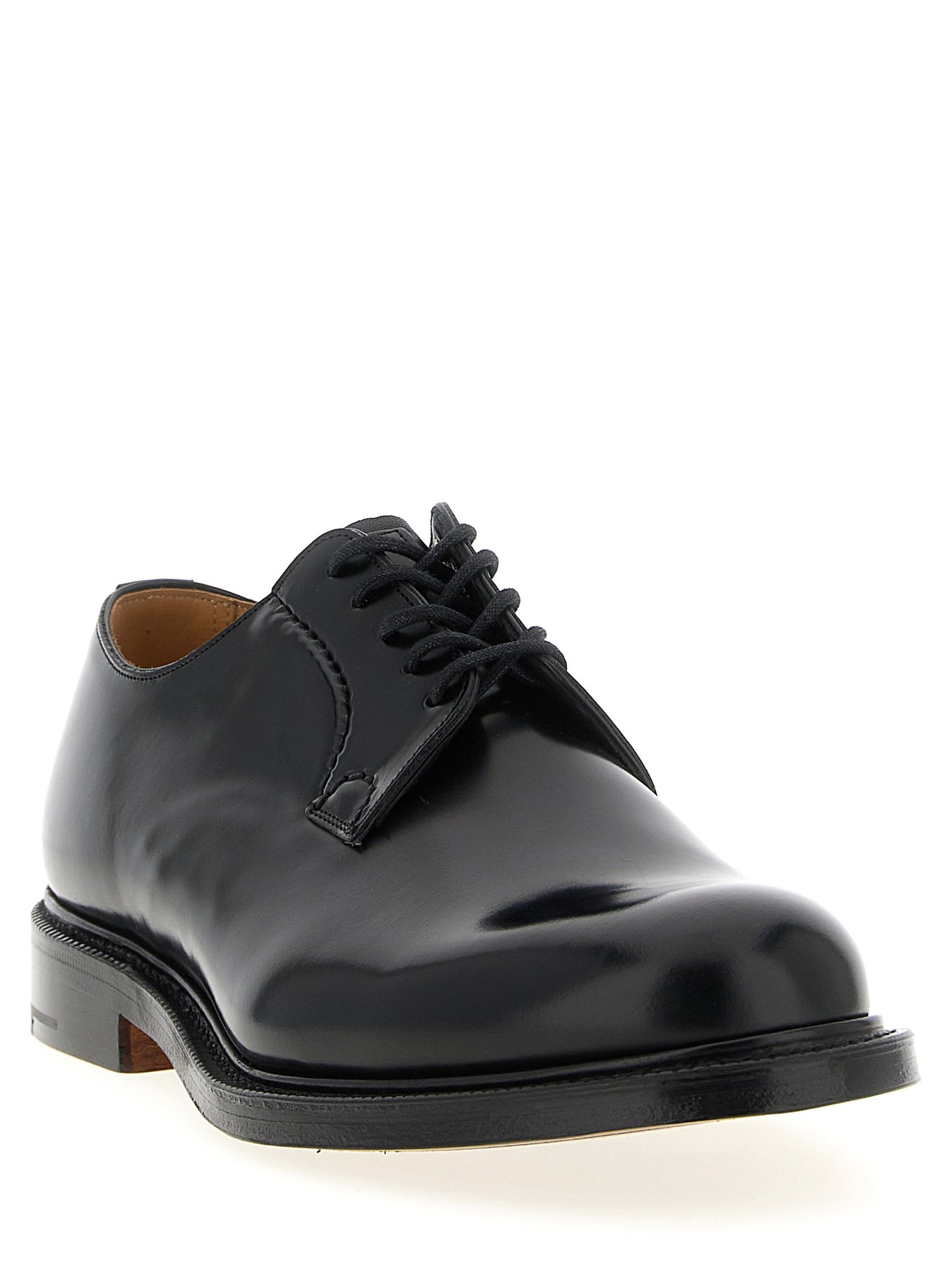 'Shannon' derby in polished brushed calf leather, rounded toe, lace-up closure, triple leather sole with rain welt.