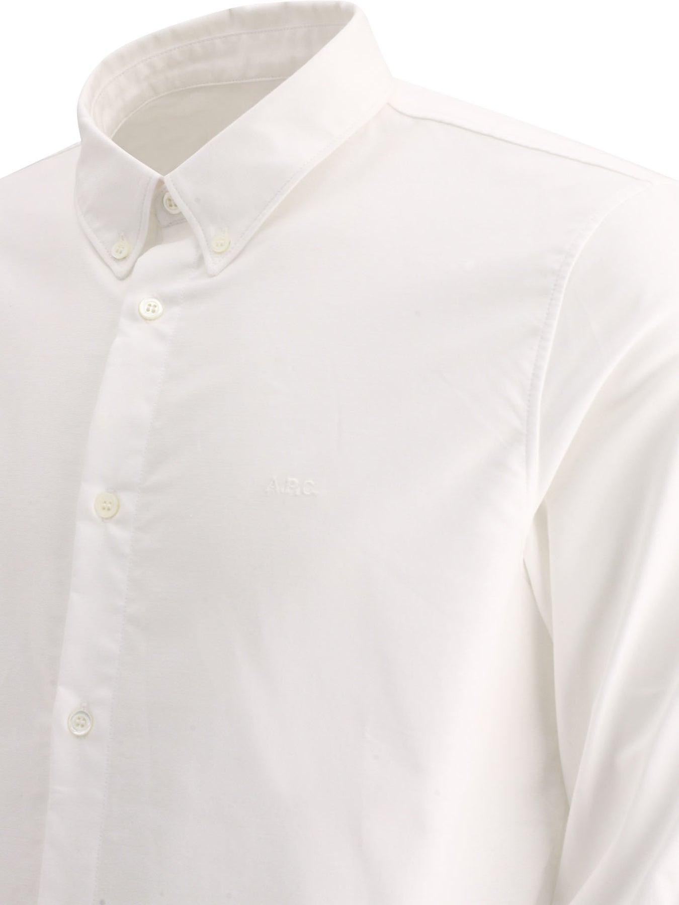 A.P.C. cotton "Greg" shirt made of organic cotton with a straight cut and regular construction. The construction highlights slightly sloping shoulders and button-down collar with button closure. The silhouette features clean, regular lines with no ornamental details. The fabric provides a smooth, lightweight surface that is optimal for everyday wear. All seams appear linear and minimal. || - Button-down collar - Long sleeves - Slightly sloping shoulders - Button closure