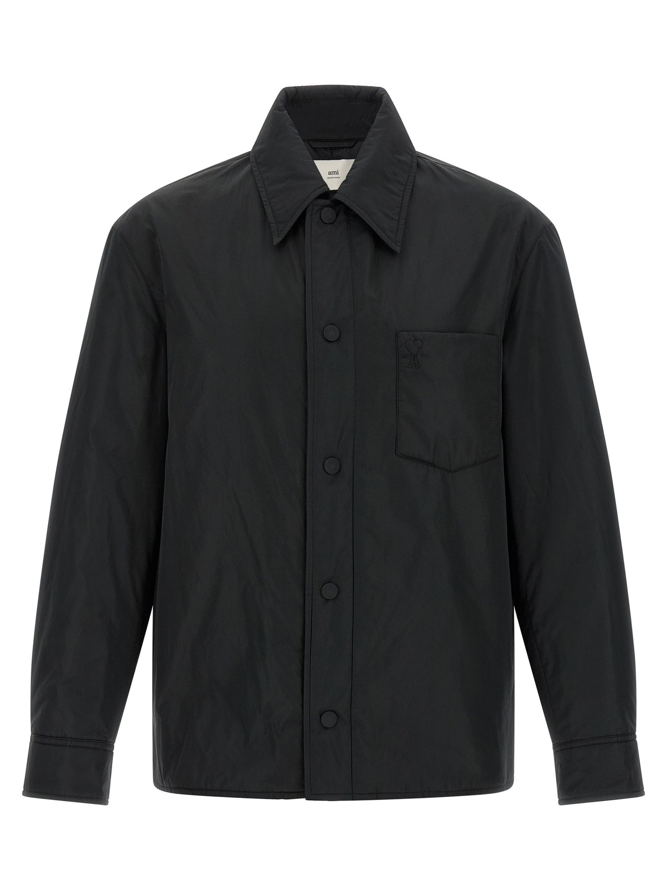 Lightly padded water-repellent technical taffetas overshirt, pocket with tonal 'Ami de Coeur' embroidery, front snap button closure, long cuffed sleeves, side slits.