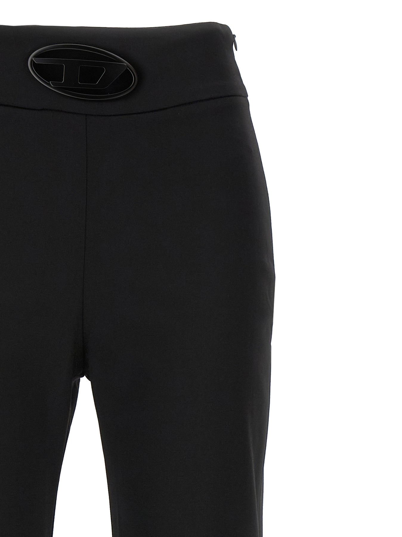 'P-Erseus' stretch wool twill pants with high waist with flared leg, tonal cut-out Oval D logo waistband, side zip closure.